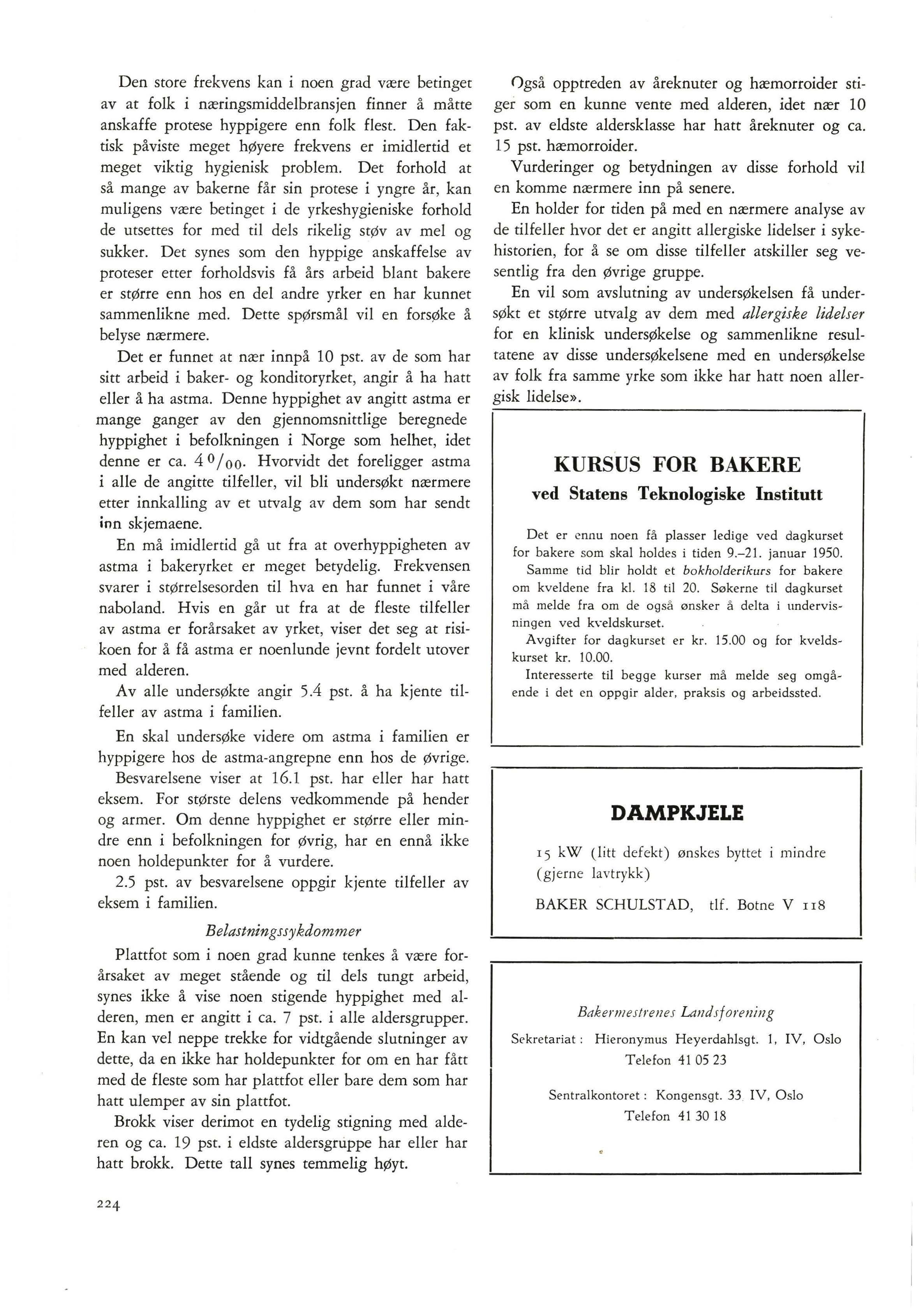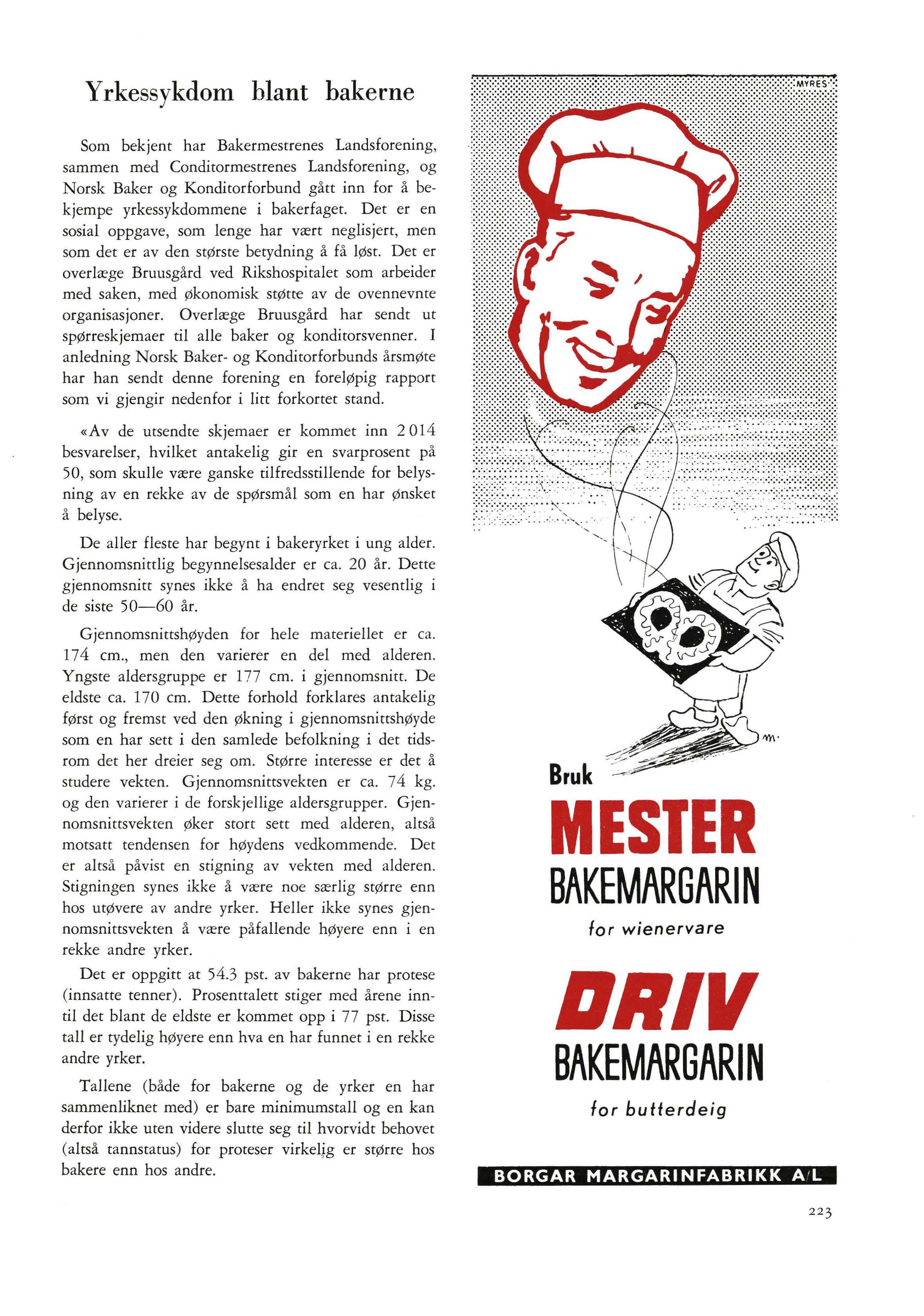 Som bekjent har Bakermestrenes Landsforening , sammen med Conditormestrenes Landsforening, og Norsk Baker og Konditorforbund gått inn for å bekjempe yrkessykdommene i bakerfaget. Det er en sosial oppgave , som lenge har vært ne g lisjert , men som det er av den største betydning å få løst Det er overlæge Bruus g ård ved Rikshospitalet som arbeider med saken , med økonomisk stØtte av de ovennevnt e organisasjoner. Overlæge Bruusgå rd har sendt ut spørreskjemaer til alle baker og konditorsvenner. I anledning Norsk Baker- og Konditorforbunds å rsm ø te har han sendt denne forening en foreløpig rapport som vi gjengir nedenfor i litt forkortet stand.