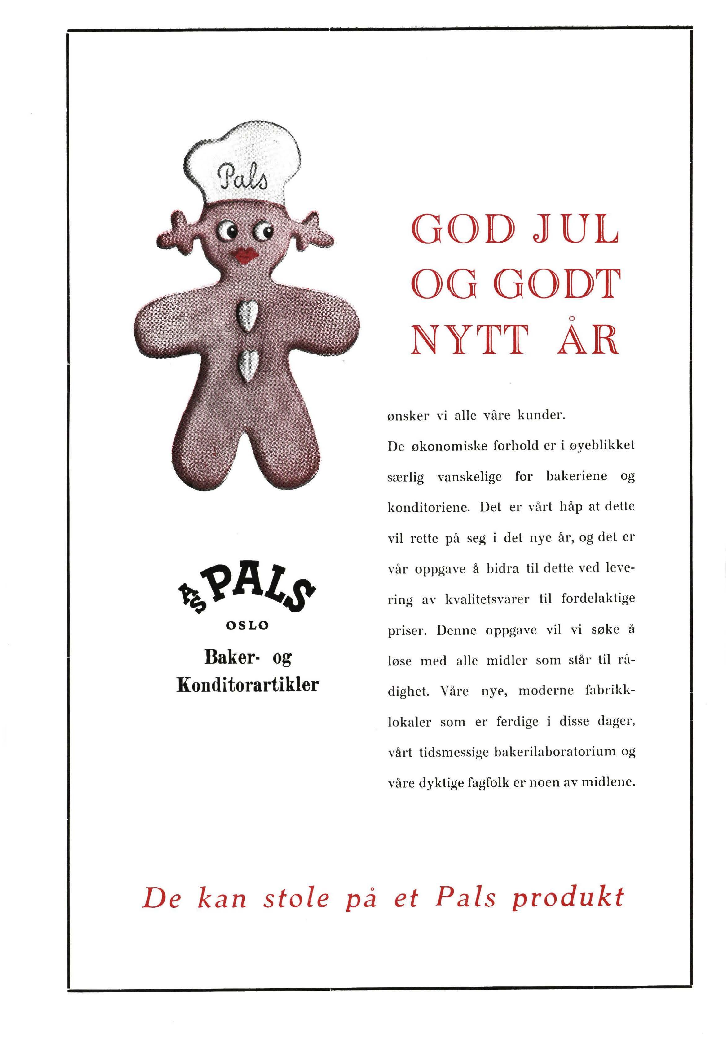 De økonomiske forhold er i øyeblikket særlig vanskelige for bakeriene og konditoriene. Det er vårt håp at dette vil rette pft seg i det nye år, og det er vår oppgave å bidra til dette ved levering av kvalitetsvarer til fordelaktige priser. Denne oppgave vil vi søke å