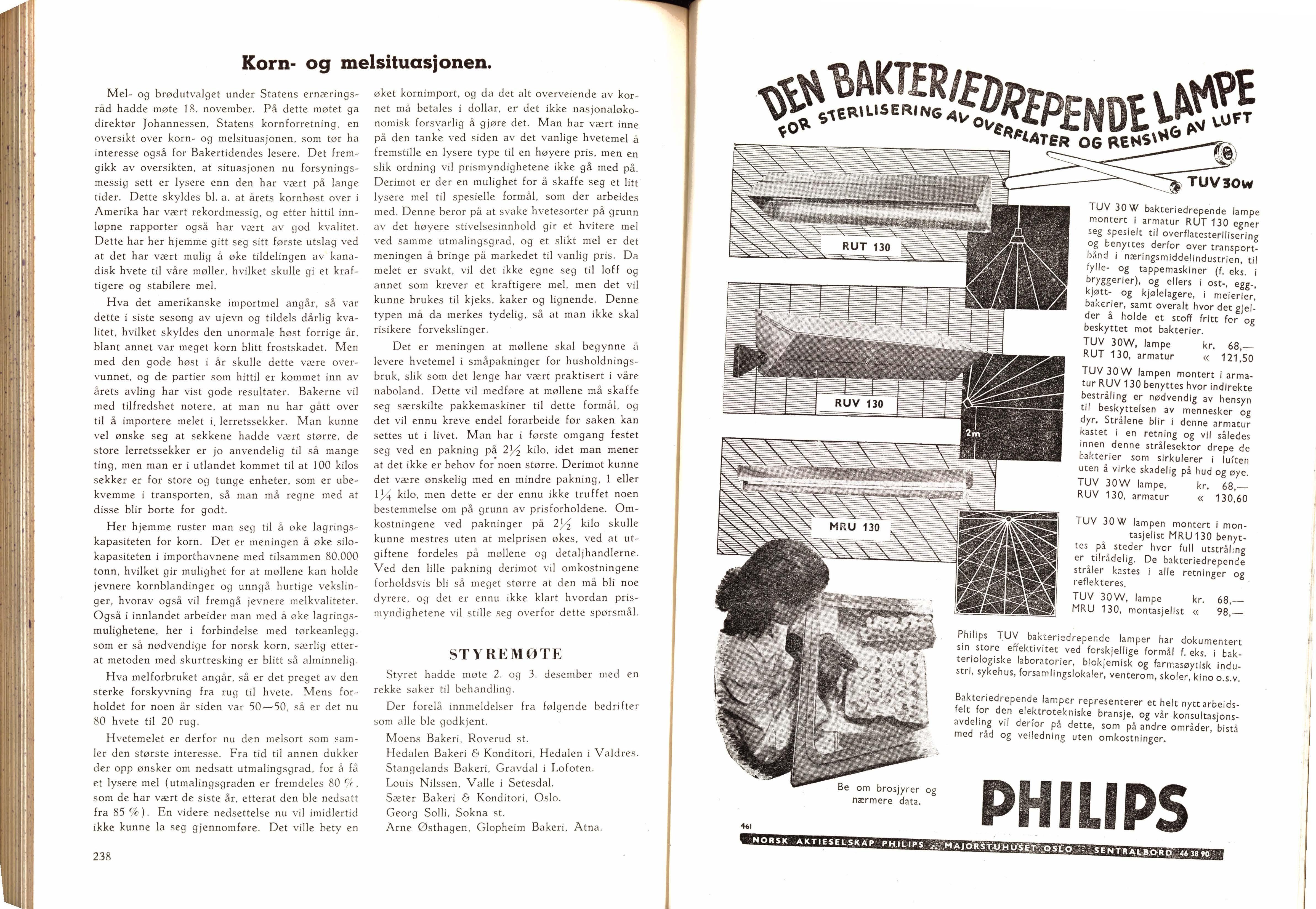 Mel- og brødutvalget under Statens ernæringsråd hadde møte 18. november På dette møtet ga direktør Joh annessen , Statens kornforretning , en oversikt over korn- og melsituasjonen , som tør ha interes se også for Bakertidendes lesere . Det fremgikk av oversikten, at situasjonen nu forsyningsmessig sett er lysere enn den har vært på lange tider. Dette skyldes bl. a. at årets kornhøst over i Amerika har vært rekordmessig, og etter hittil innløpne rapporter også har vært av god kvalitet. Dette har her hjemme gitt seg sitt første utslag ved at det har vær t mulig å øke tildelingen av kanadisk h vete til våre møller. hvilket sku ll e gi et kraftigere og sta bilere mel.