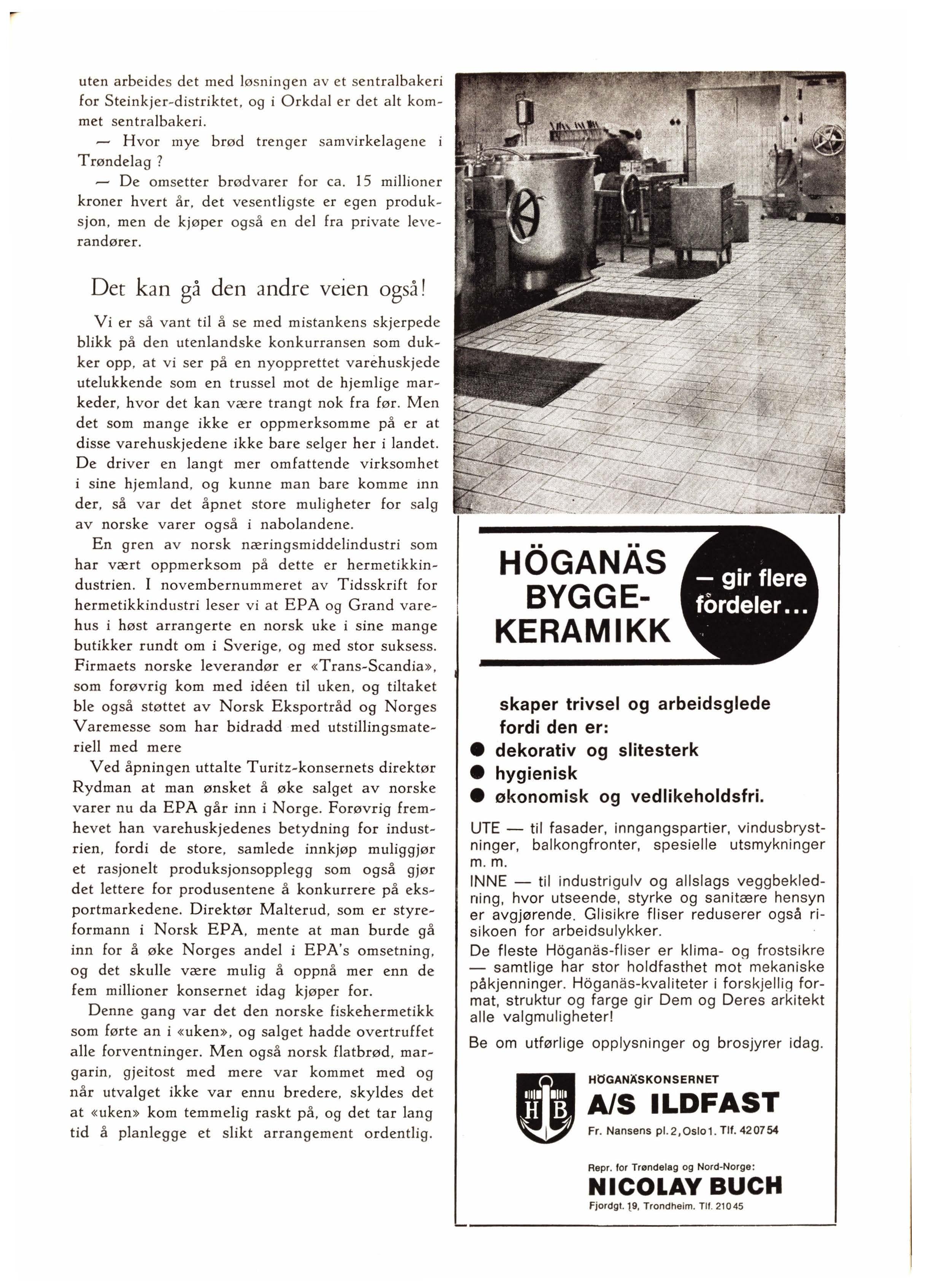 En gren av norsk næringsmiddelindustri som har vært oppmerksom på dette er hermetikkindustrien. I novembernummeret av Tidsskrift for hermetikkindustri leser vi at EPA og Grand varehus i høst arrangerte en norsk uke i sine mange butikker rundt om i Sverige, og med stor suksess. Firmaets norske leverandør er « Trans-Scandia », som forøvrig kom med ideen til uken, og tiltaket ble også støttet av Norsk Eksportråd og Norges Varemesse som har bidradd med utstillingsmateriell med mere