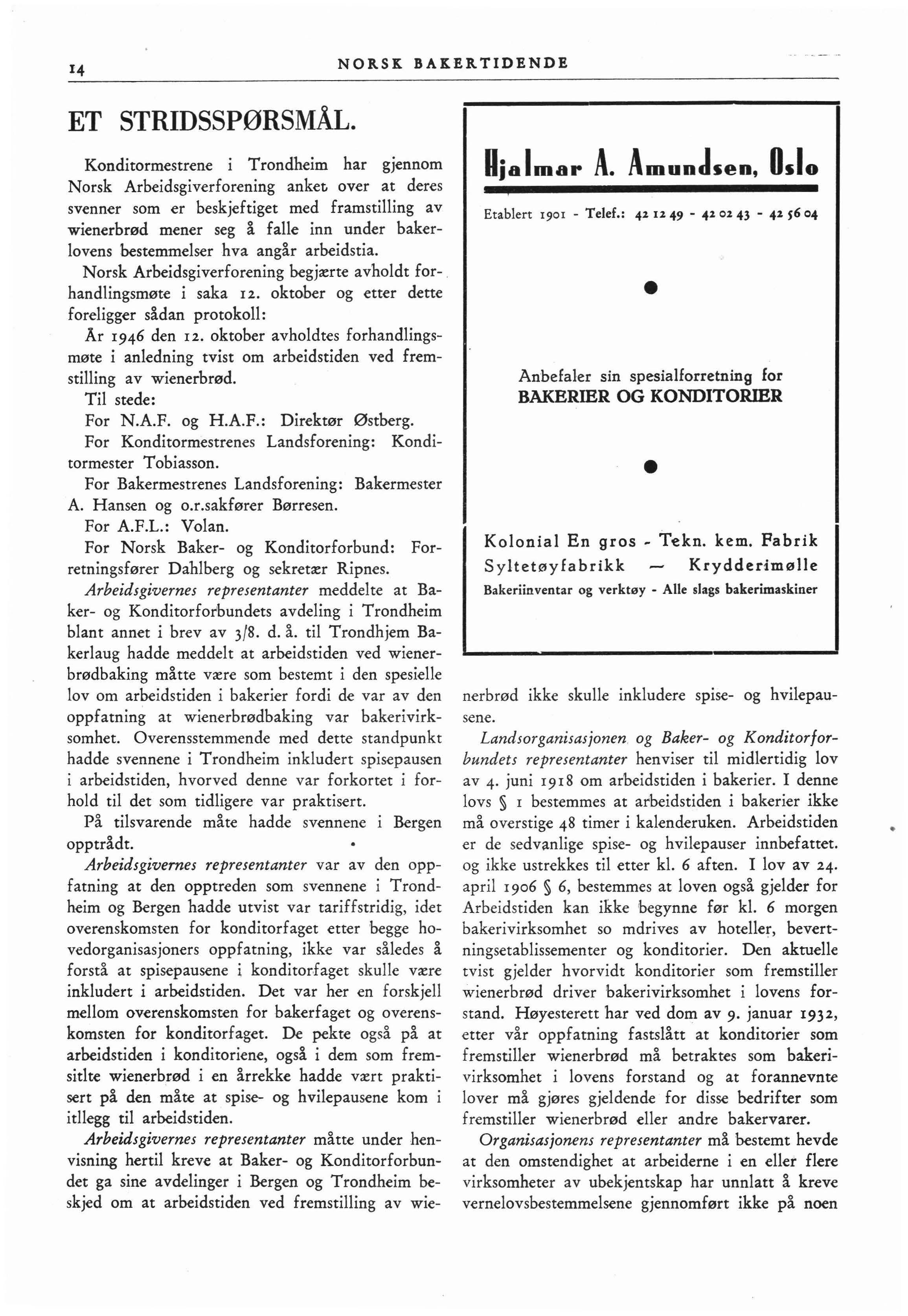 År 1946 den 12. oktober avholdtes forhandlingsmøte i anledning tvist om arbeidstiden ved fremstilling av wienerbrød.
