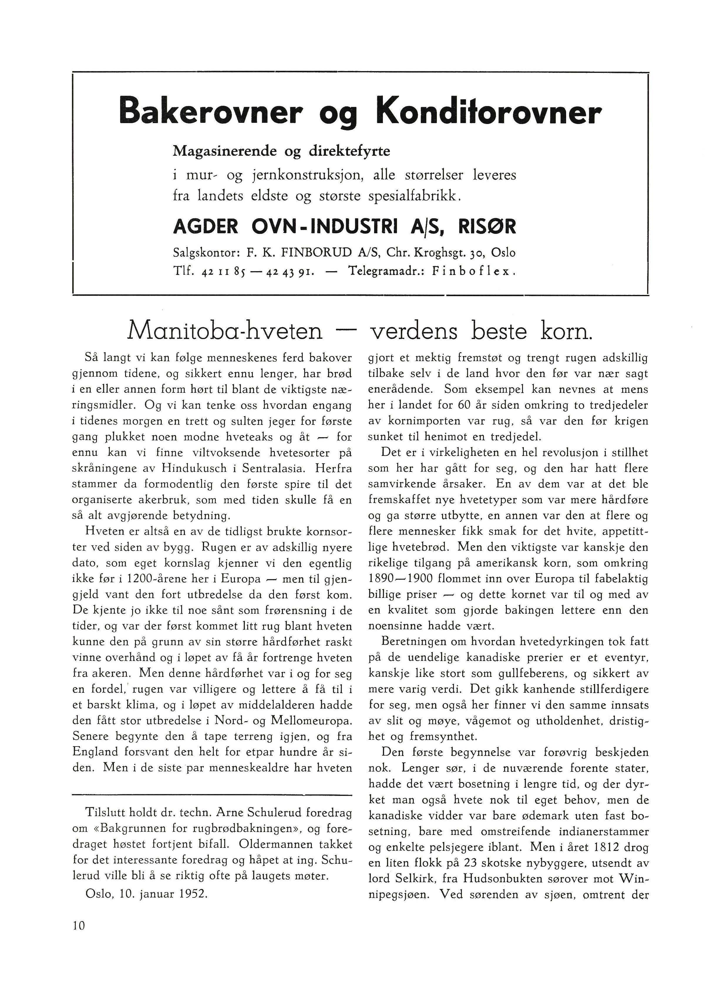 INNHOL O : GODT NYTT AR! - NOEN BETRAKTNINGER OMKRING PRISENE - HILMER HYLANDER - DAGKURS - VIDEREUTDANNELSE - LARS HOFSETH t - DIREKTØR OSK. JAHNSEN t MEDLEMSMØTE - MANITOBA -HVETE - INNHOLDSFORTEGNELSE 1952 - DE NORSKE GJÆR- & SPRITFABRIKKER A /S OG DEN FRIE KONKURRANSE -