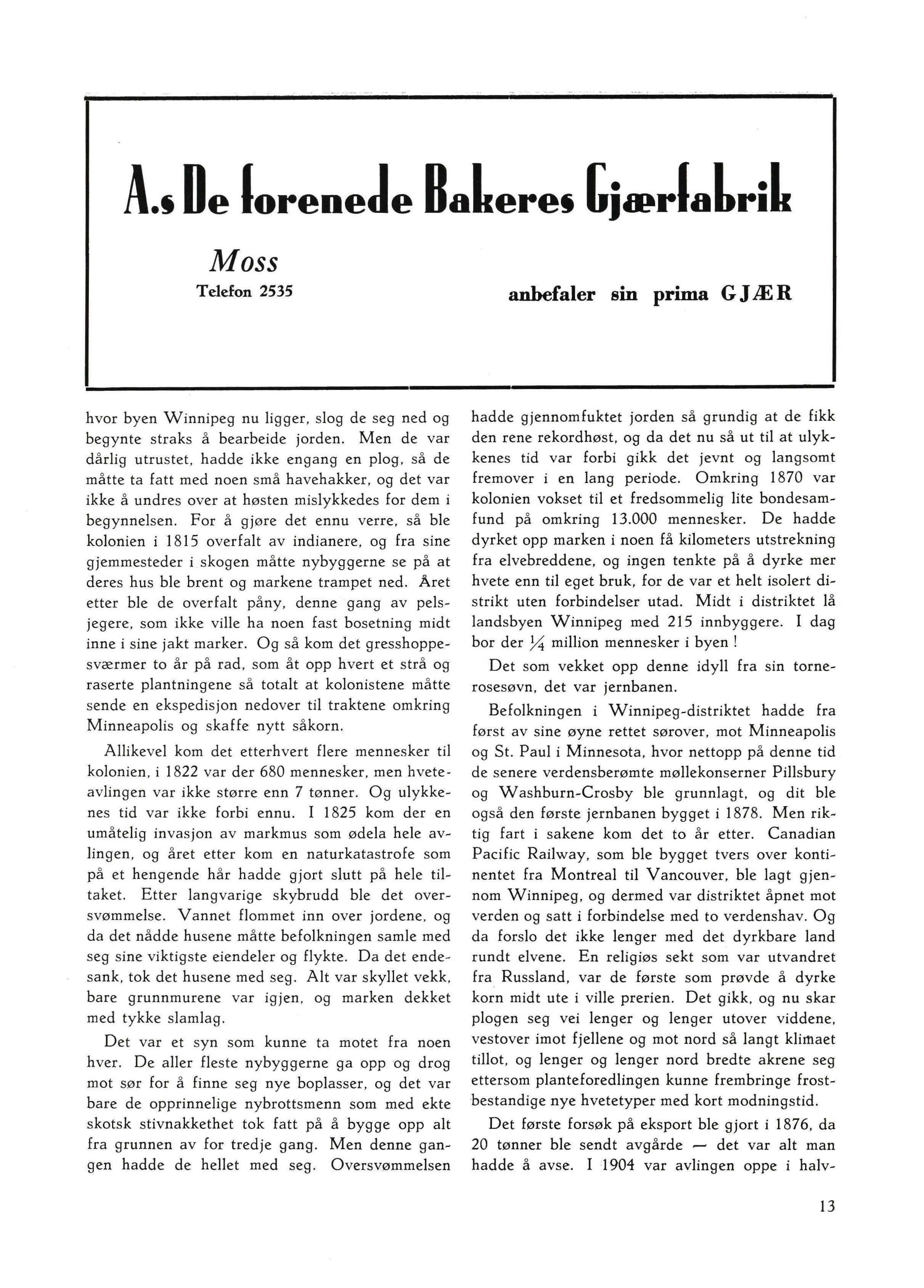 Den store fordelen ved dette fabelaktige kontrollsystemet er at man ikke behøver å kjøpe etter prøve. Standardiseringen er så fullkommen at om en mann kjøper Manitoba nr. 3, så er han også sikker på å få akkurat denne kvalitet, hva enten han er bosatt i Norge eller Venezuela. Intet und~r derfor at enhver møller nevner det magiske ord «Manitoba» med en viss ærefrykt. Verden har flere andre kornkamre 'Også, men Manitobahveten er og blir nummer en.