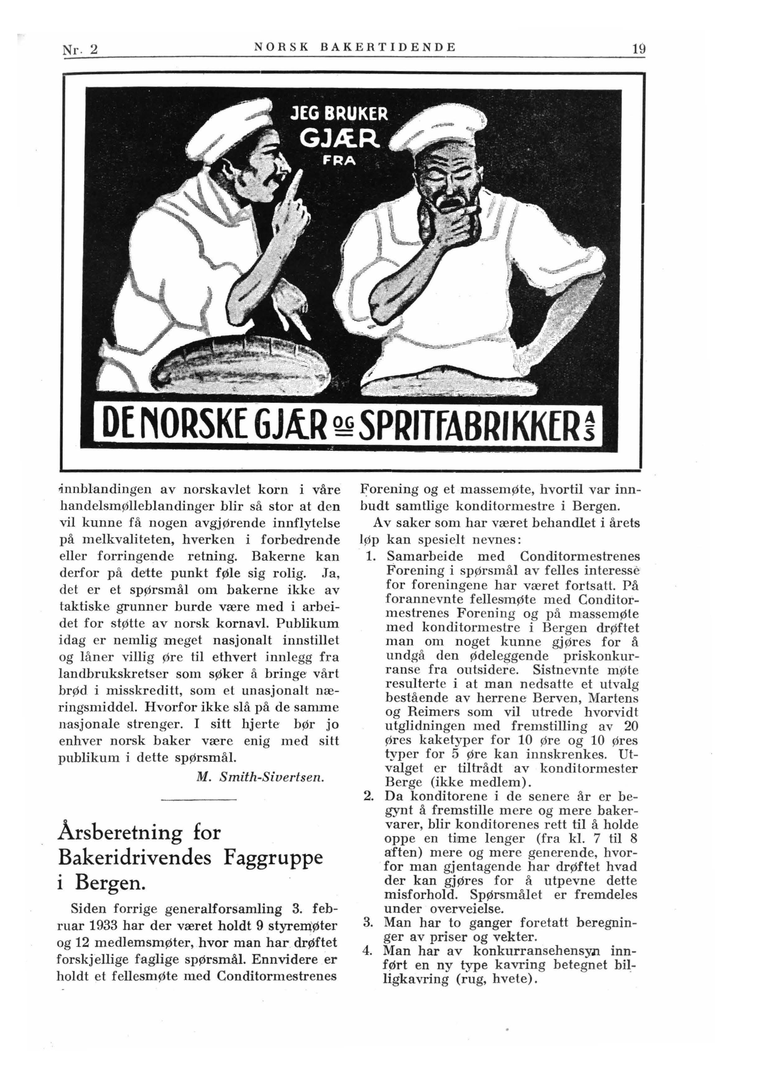 Inn ho Id : t Bakermester Nicolay Martens. - Kornavlen i Norge. - Årsbere tninll, for Bakeridrivendes Faggruppe i Bergen. - Landet runcl't. - Skal bakerne utlevere deres nøkler. - 93 llr. - Muligheter i brød. - En svensk anme ldelse av bakerboken. - Zinkhvitt isledetfor hvetemel.D amp i bak erovn. - Oversikt over kornmarkedet i jan. 1934.