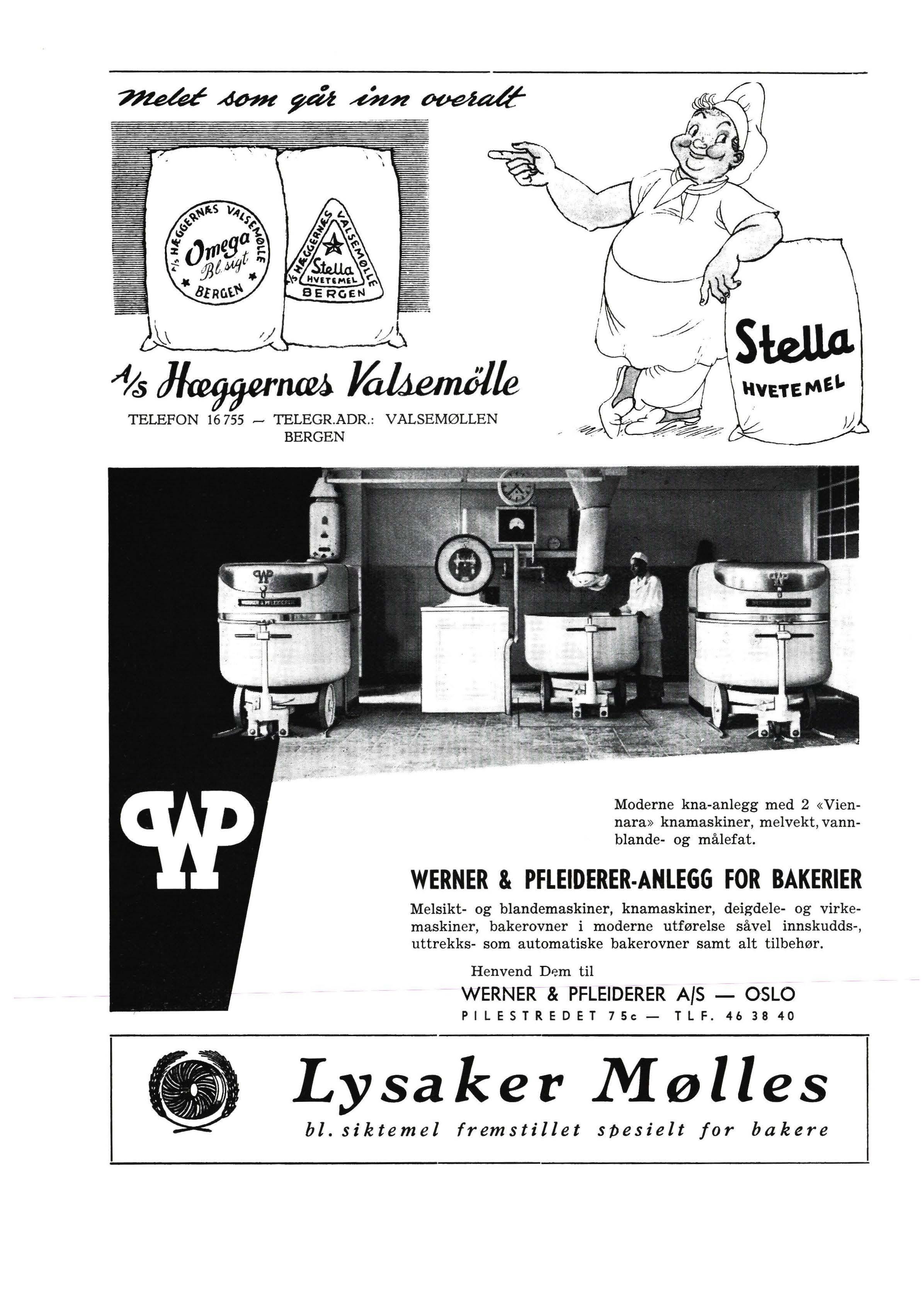 A trekke direkte sammenligning mellom bakerforhold i Amerika og Norge vil være temmelig ugjørlig. Man må først og fremst huske at Amerika er et land med så enorme omsetningsmuligheter at et bakeri kan eksistere i ganske stort format ved kun å omsette en eneste sort brødvarer. Det finnes således i Amerika bedrifter s om utelukkende produserer den der anvendte loff b a kt i form og pakket. Til sammenligning bør det nevne s at i Norge eksisterer ikke noe slikt bakeri.