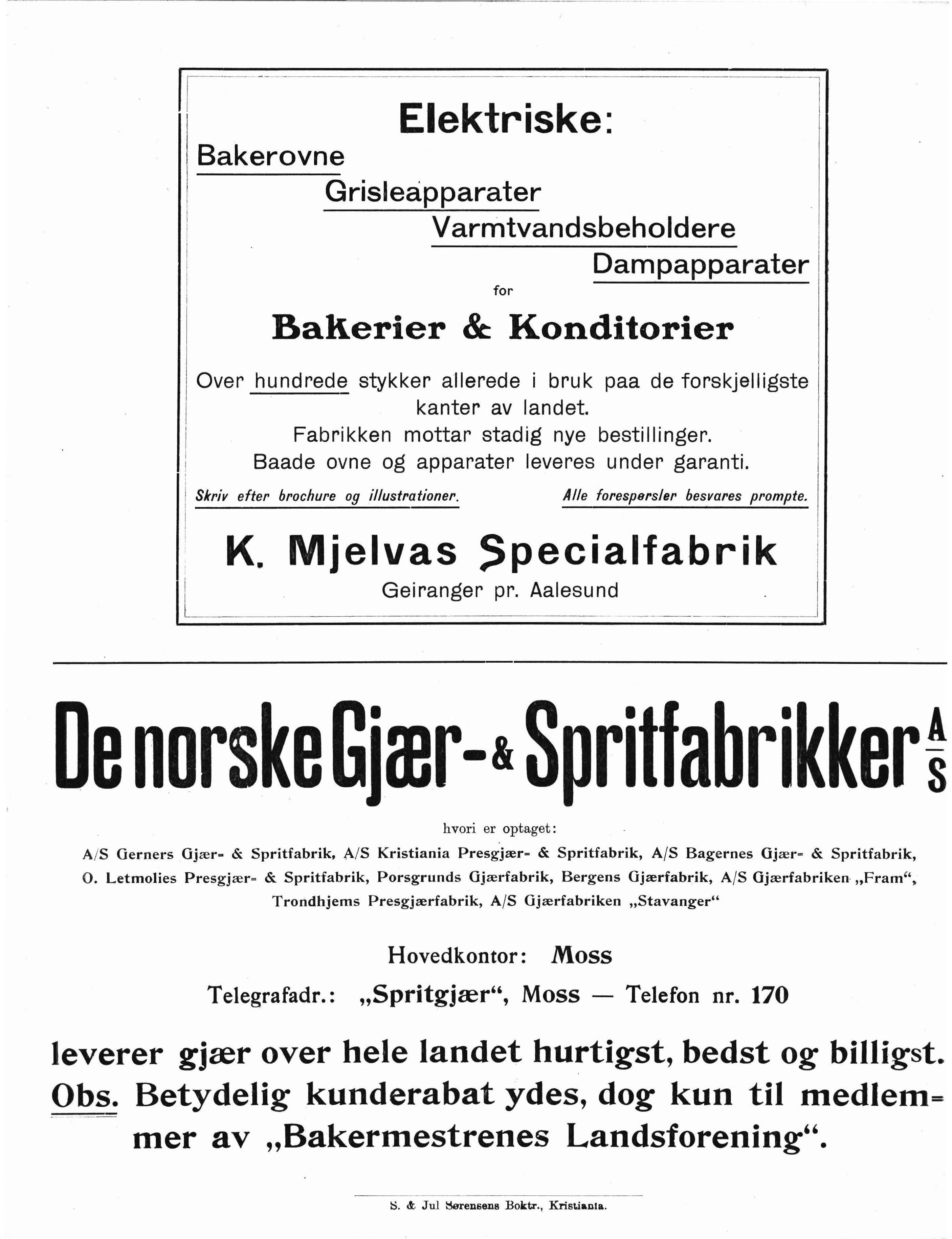 A / S Gerners Gjær- & Spritfabrik, A / S Kristiania Presgjær- & Spritfabrik, A/S Bagernes Gjær- & Spritfabrik, O. Letmolies Presgjær ø & Spritfabrik, Porsgrunds Gjærfabrik, Bergens Gjærfabrik, A / S Gjærfabriken "Fram'', Trondhjems Presgjærfabrik, A / S Gjærfabriken "Stavanger"