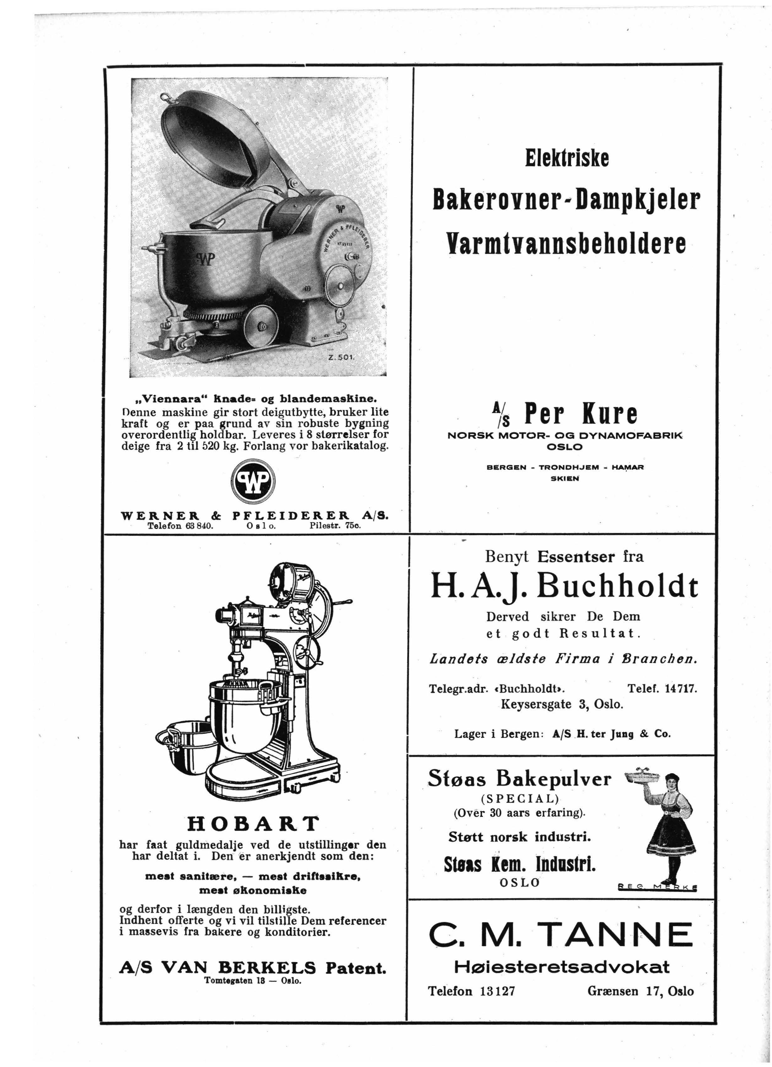Vannrørbakerovner, underfyrings-, kull & vedovner, b~keri:rnaskiner og bakeriinventar av enhver art.