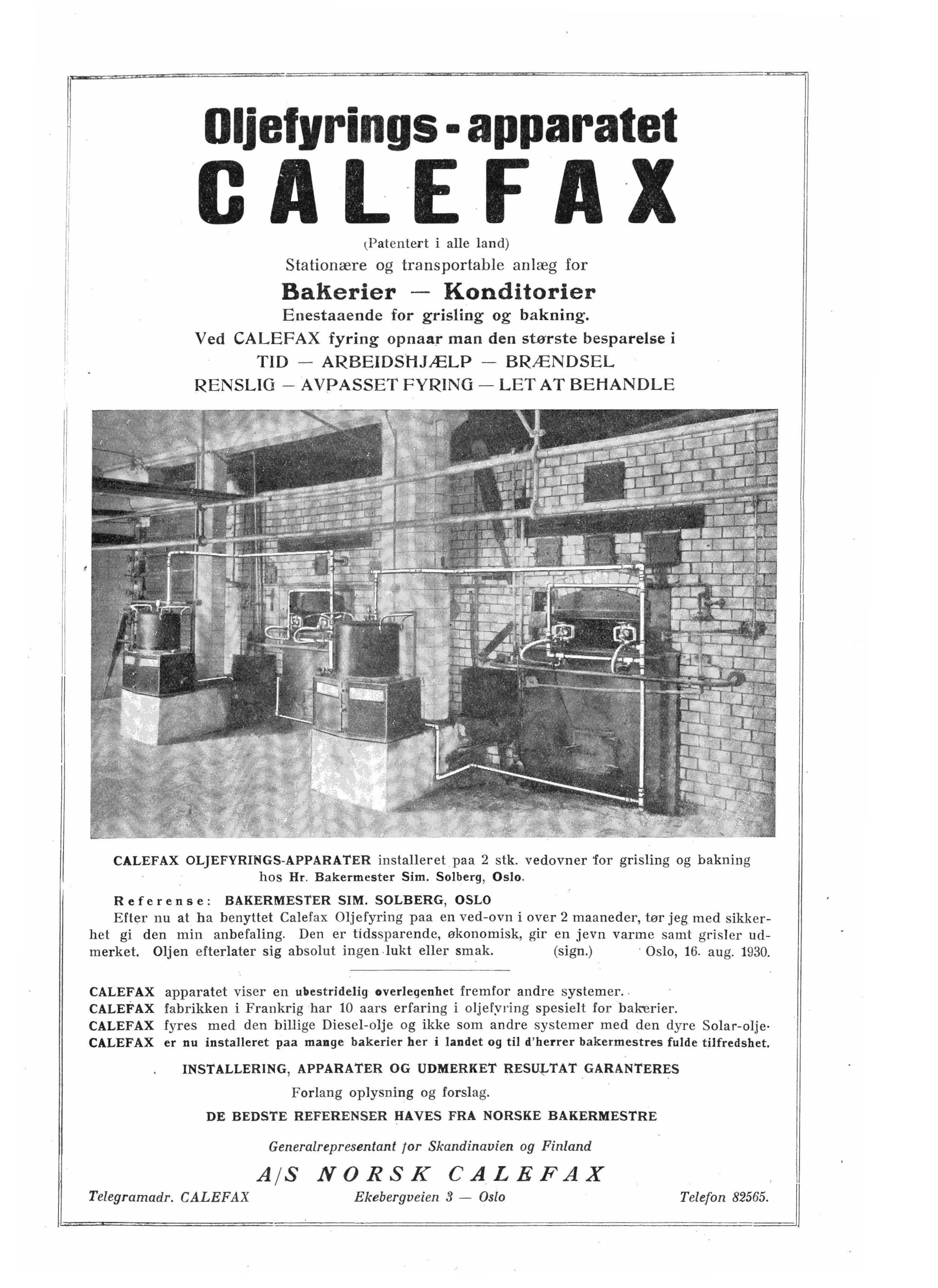 Oljefyr.ing a :v bakerovner - spesielt av de gamle vedovner - går sin seiersgang. Hittil er der montert 5,0 apparater bare av Galefax system i Norge, og der kommer stadig nye fo:æspØrs1er. Såvidt vi har kunnet bringe ,i erfaring er der almind'elig tilfredshet med denne fyringsimetode. Ved si den av å være renslig og tidsbæp1a,rende er den samtidig billig. Et større Oslo -,bakeri medde!ler at oljefy!ringen har mied:f.Ølrt oo besparelse på brenselskontoen p,å 40 pct fremfor vedfyrung. Alle de apparater som nu er ins,taHert er beregnet p,å murte direkte fyrte ovner. iA / tS Calefax bringer imidlertid i den nærme ste fremtid på markedet et olj.efyring,ssystem bereg,net på kulJfyrte rørovner. Med den overmåte lett regulerbar1 e ,dljefyring er vi overbevis,t om at oljefyring likesom i kjeleanlegg også erobrer bakerovnene, og i Amerika f. eks. be-