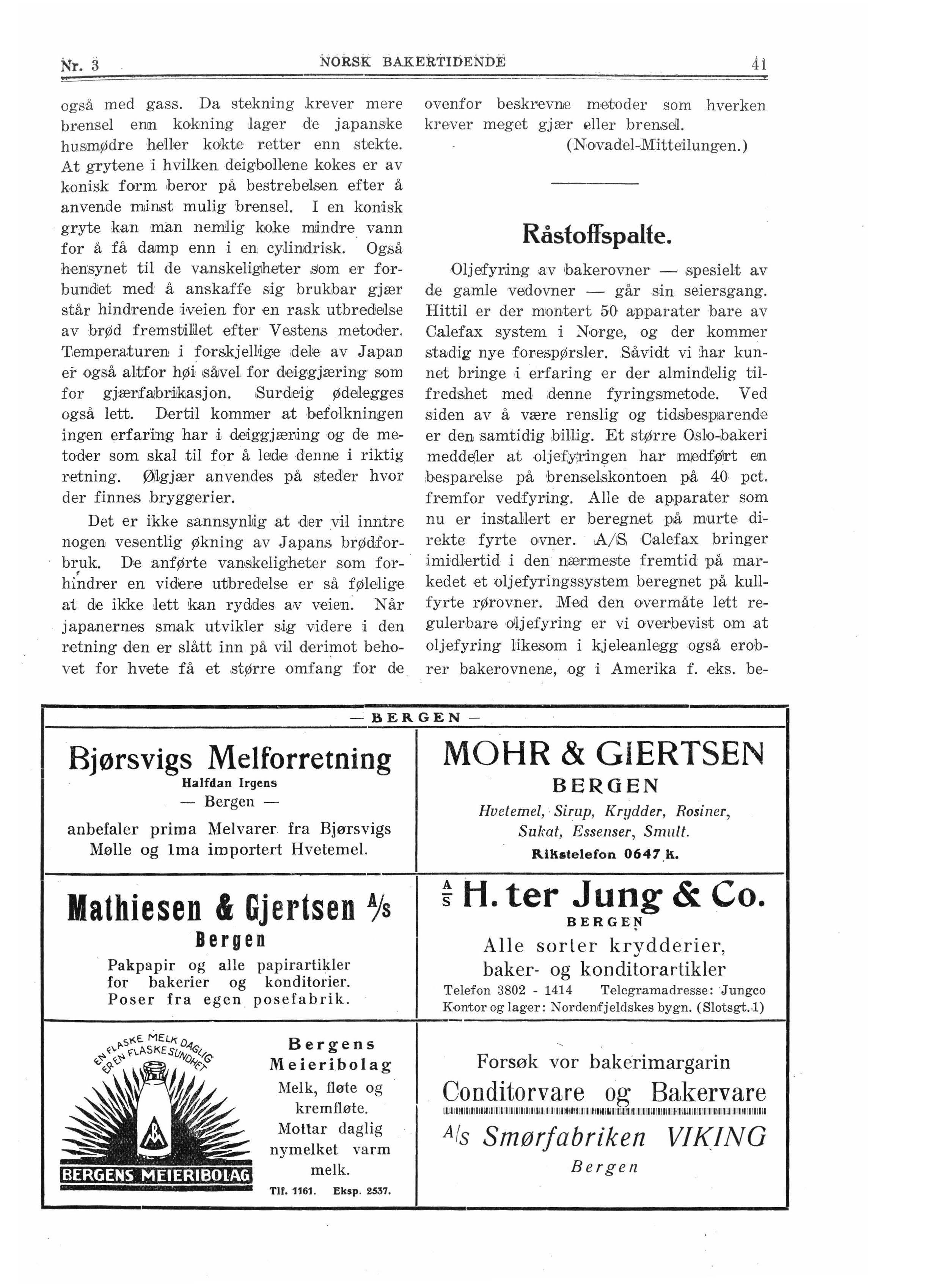 nyttes der nu mere 01ljefyring i bakeribedriftene enn annen fyring ,Det nye oljefyringssystem for rørovner, s'Om altså i den nærmeste fremtid blir å få, er nettop uteksperimentert i Amerika.
