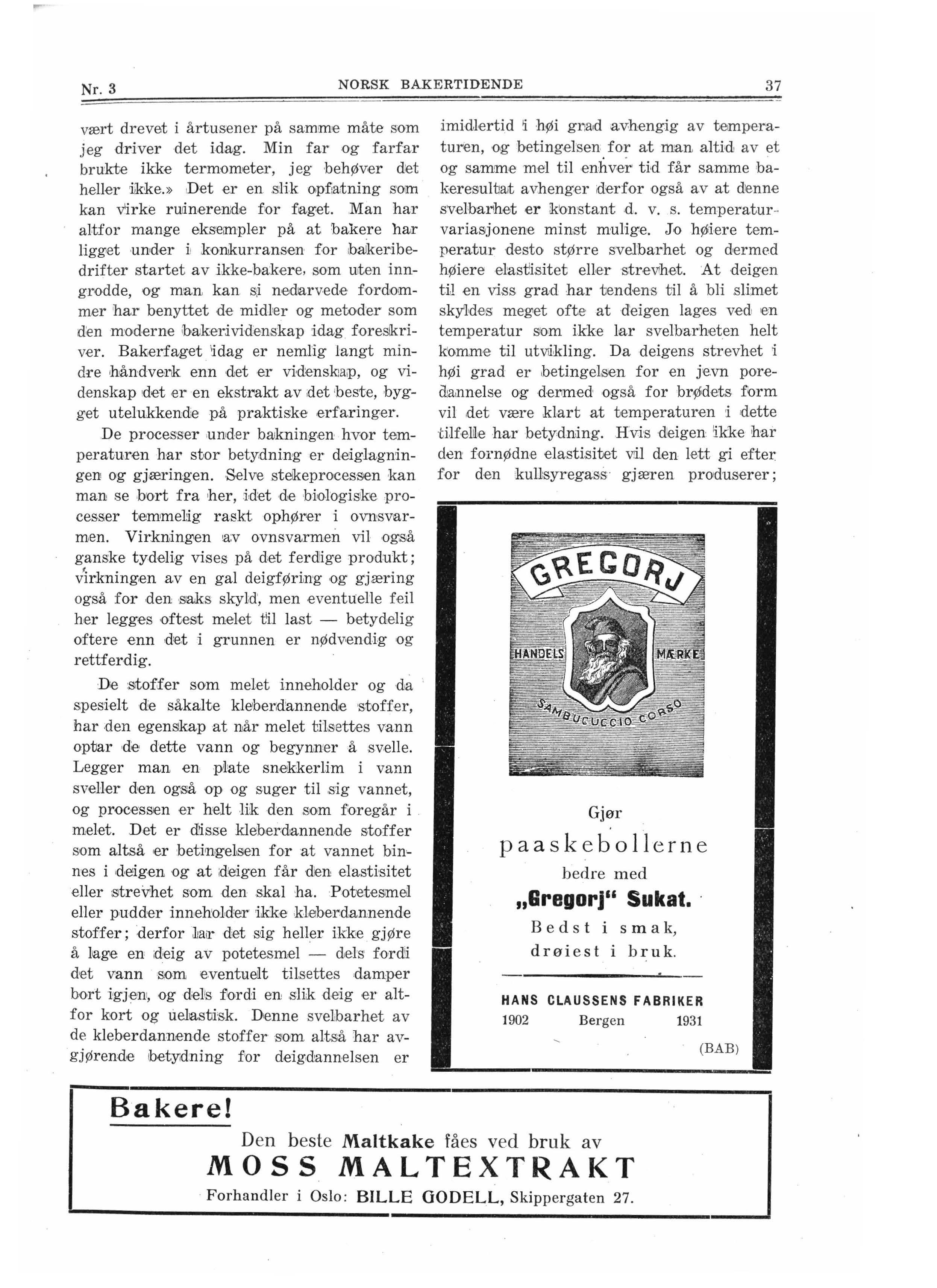 Bakerfaget beskjeftiger sig med ,såka lte b,iologisk•e processer - l'ivsprocess,er kan man kaUe ;det. Såvel mel et som g jæren dergår under biakningen forandringer, som i hØi grad henger sammen me•d livsfunksjoner, og disse funksjoner krevcer, for ,at de skal foregå på den riktige måte, sakkyndig p~,efo. ,Bakeren !har overtatt pl~ ieren1 s rolle ,og han - og · i reg,e1en lmn han - har ansvaret fo :r at processene, d. v. s. bakn!ingen foregår på d'en heste måte. Bakerne er ofte tilbØ-ielige rn å gi melet sky lden når deres bakning misl,yik:kes. I ,enkelte tilfeil,e kan det være riktig, men, i .svært mange tJWfeUer har ikke me1,et sikylden, men baker•en ,s•elv. F ior at en ilivs proeess• skal kunne for-egå kreves først og fremst vann. Men ved siden herav krever enhver livspro:cess en såkalt optimal temp,eratur, d. v. s en temperatur eller ,et ganske lite t-em-