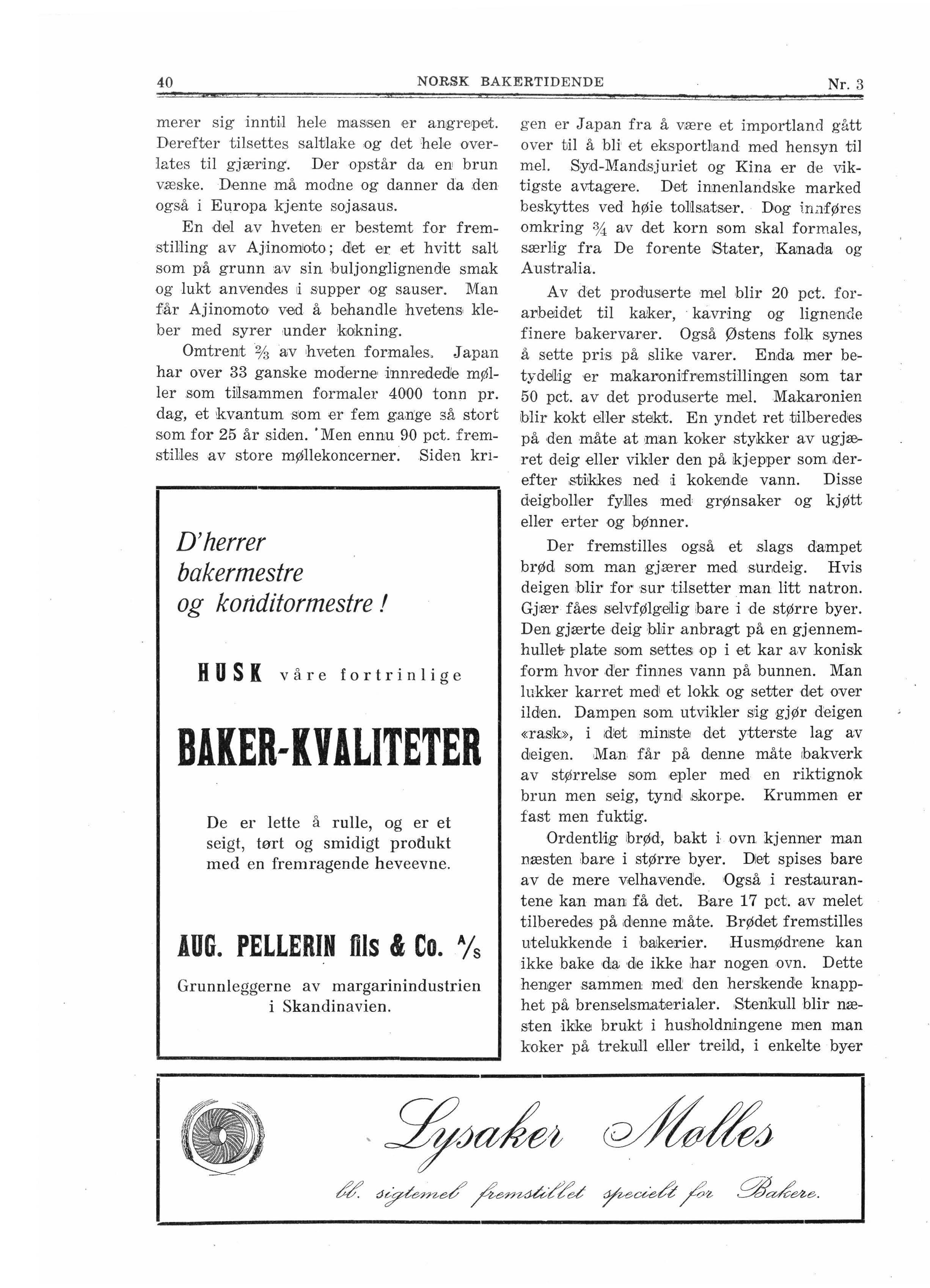 g en er Japan fra å være et importlan d gått over t il å bli' et eksportlia nd med h ensyn til mel. S:y:d-Mandsjuriet og Kina e r de viktig ste avtagere. Dert innenlandske marked beskyttes ved hØie tolils.a.tser. Do,g irL1føres omkring ¾ av det korn som skal formale s, særlig fra De foiiente Stater, Kanada og Au stralia.