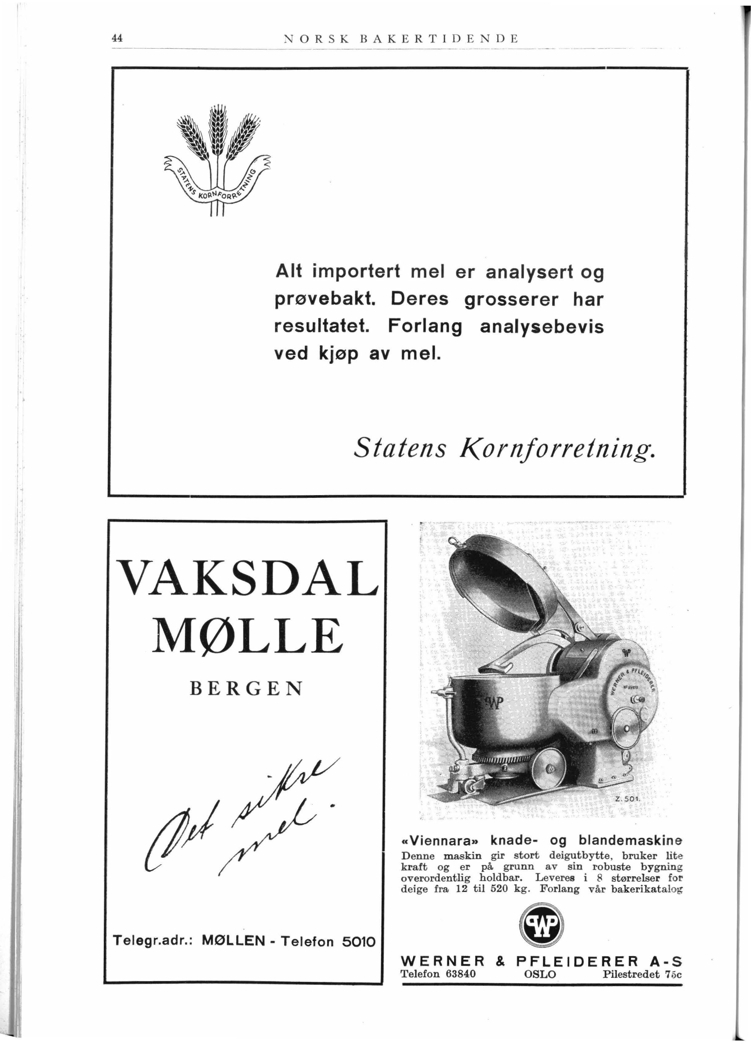 WERNER & PFLEIDERER A-S Telefon 63840 OSLO Pilestredet 7 6c