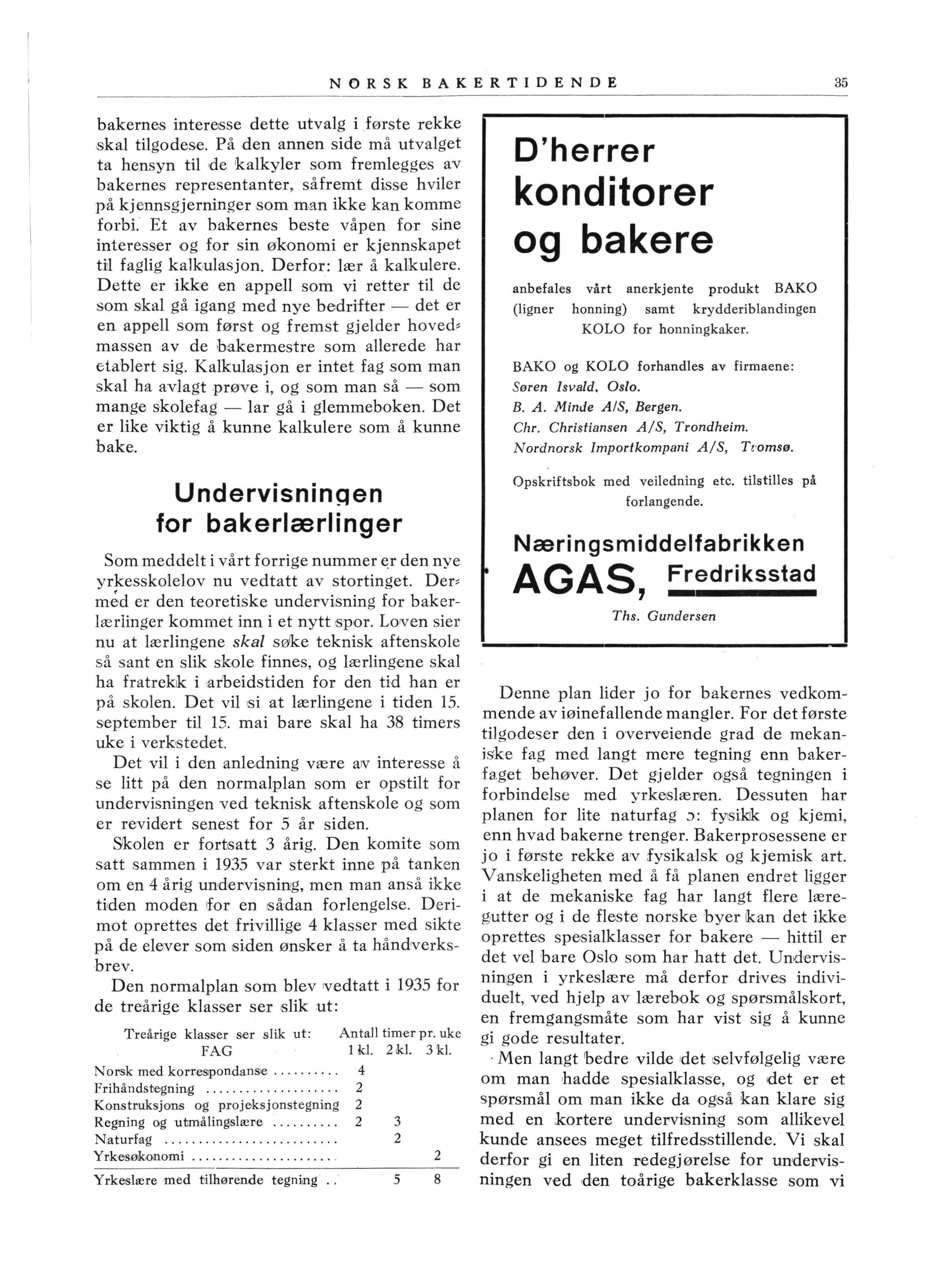 · Men langt bedre vil de de t selvfølge li g være om man hadde spes ialkla sse, og det er et spø r små l om man ikke da o ,g6å kan klare sig med en kortere unde rv~sning som allikevel kunde ansees me get tilfred s!S tillende Vi skal derfor gi en liten redegjørelse for unde l"Visnin gen v ed ,den toårige bakerkla sse so m vi