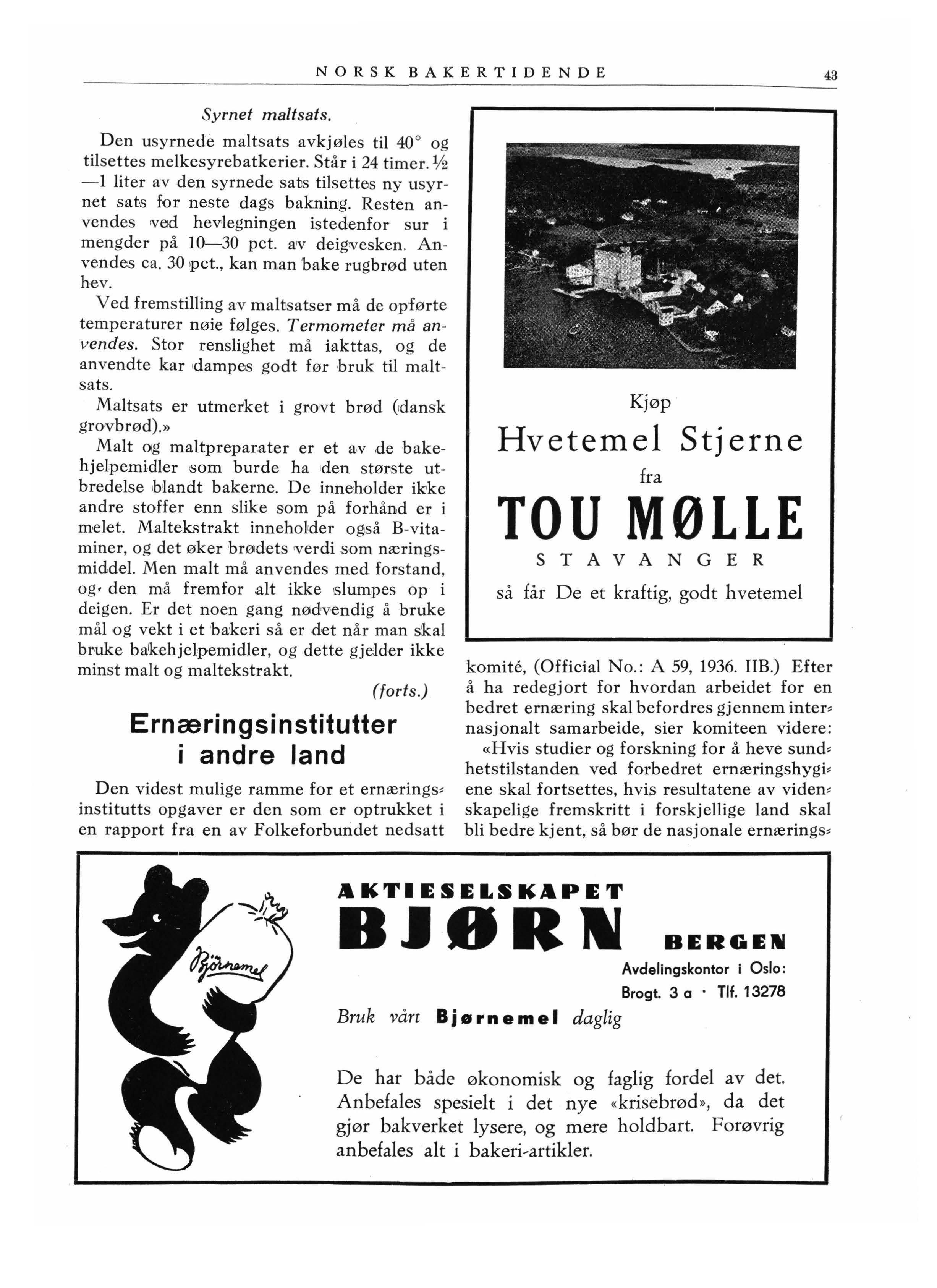 Malt og maltpreparater er et a-v de bakehjelpemidler ,som burde ha iden støriste utbredelse ihlandt bakerne. De inneholder ikke andr-e stoffer enn slike som på forhånd er i melet. Maltekstrakt inneholider og,så B-vitaminer, og det øker brødets 1verdi som næringsmiddel. Men malt må anvendes med forstand, og, den må fremfor .alt ikke slumpes op i deigen. Er det noen gang nødvendig å bruke mål og vekt i et ba:keri så er ,det når man skal br,uke bakehjelpemidler, og ,dette gjelder ikke minst malt og maltekstrakt.