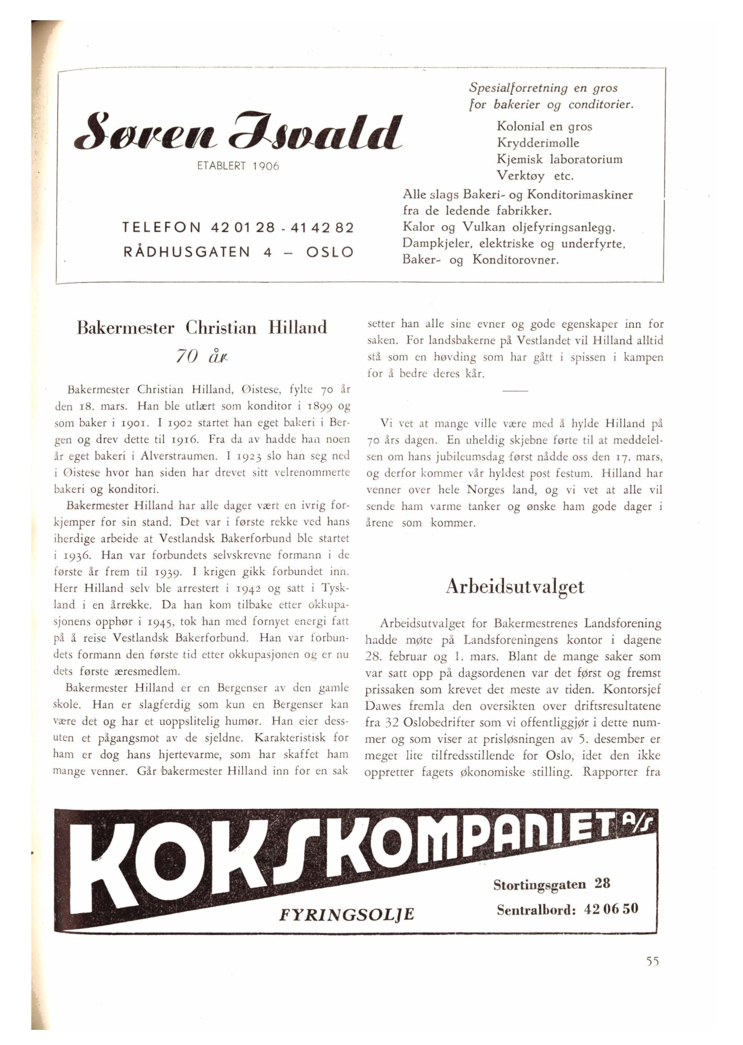 Bakermester Christian Hi Iland , Øistese, fylte 70 år <len 18. mars. Han ble utlært som konditor i T899 og som baker i 1901. I 1902 startet han eget bakeri i Bergen og drev dette til 1916 Fra da av hadd e han noen år eget bakeri i Alverstraumen. I 192 3 slo han seg ned i Oistese hvor han siden har drevet sitt velrenommerte bakeri og konditori.