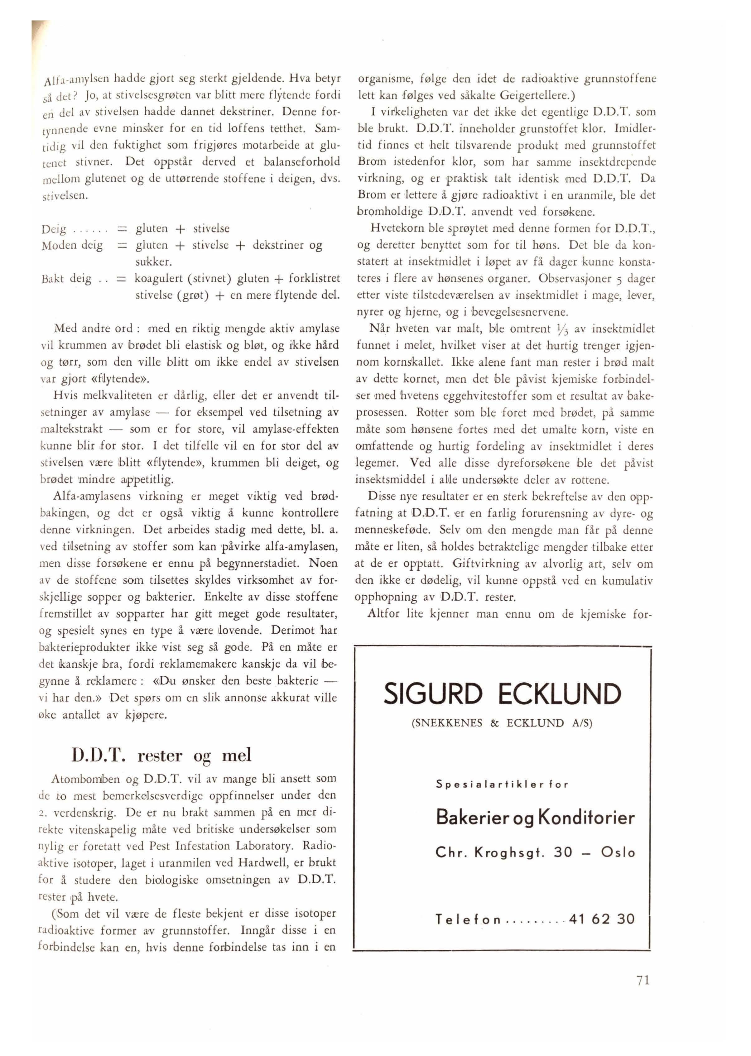 Utgitt av Bakermestrenes Landsforening. - Medlem av Den Norske Fagpresses Forening Redaktør : sivilingeniør Leif Larsen• Teknolog isk Institutt, Oslo Postadresse: Postboks 2614 - Oslo - Telefon 33 08 80