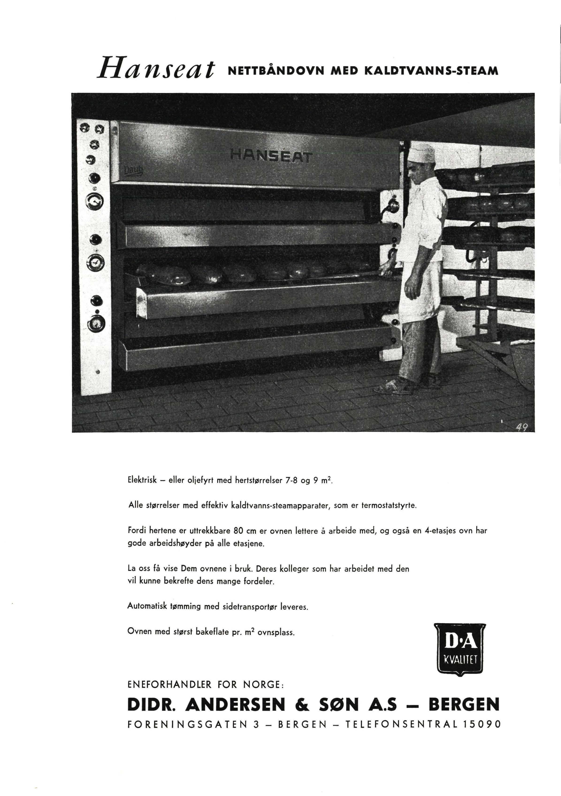 «Når vi i dag feirer 100 års-jubileum i bakeribransjen, kan vi se tilbake på en rivende teknisk utvikling, ikke minst i transportsektoren. I gamle dager diltet hestene bedagelig rundt omkring med brødvognene, men nu når minuttene teller kan det kun satses på det absolutt påliteligste og mest moderne materiell. Her har vi valgt Volkswagen, og den har bestått prøven med glans. Alltid villig, rask i trafikken, rommelig og allikevel kommer den inn alle steder. Og det er viktig så trangt som det er i byen i dag.»
