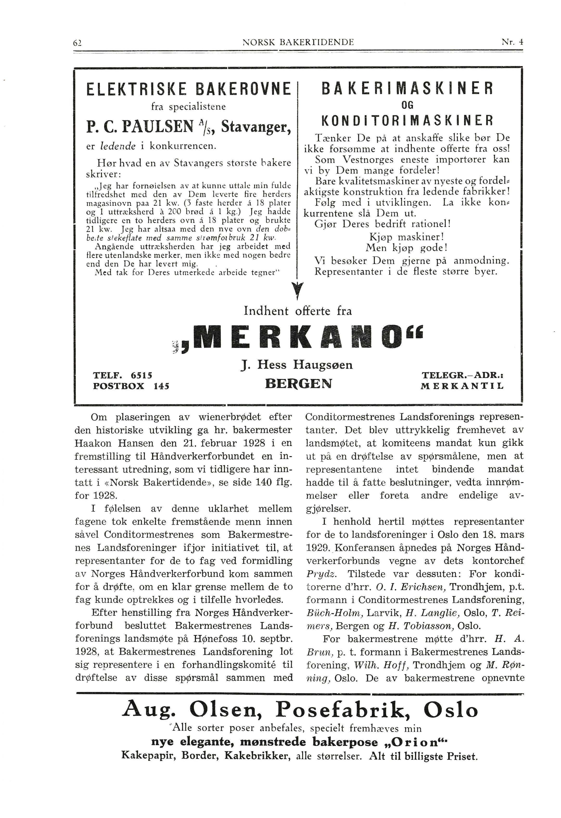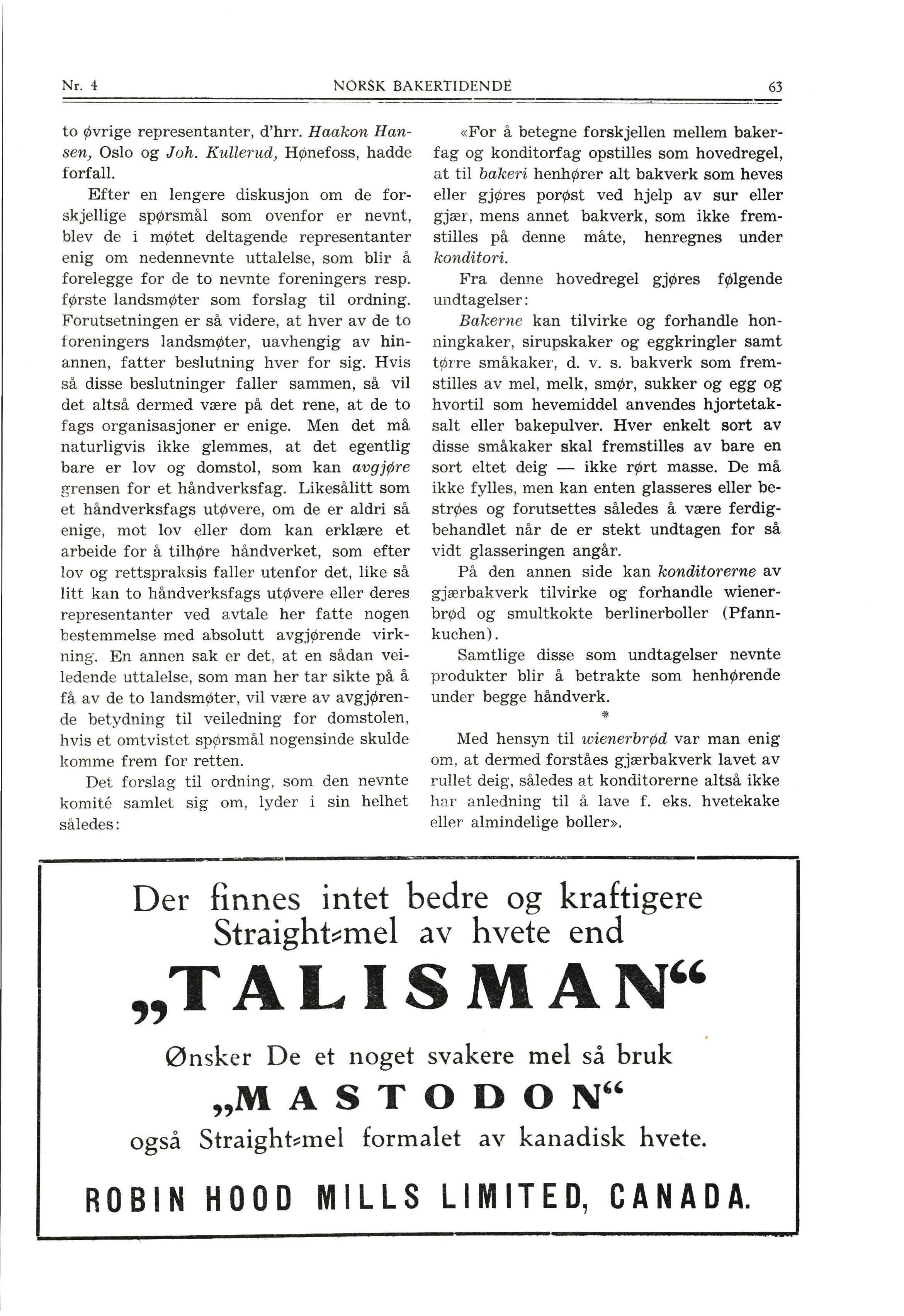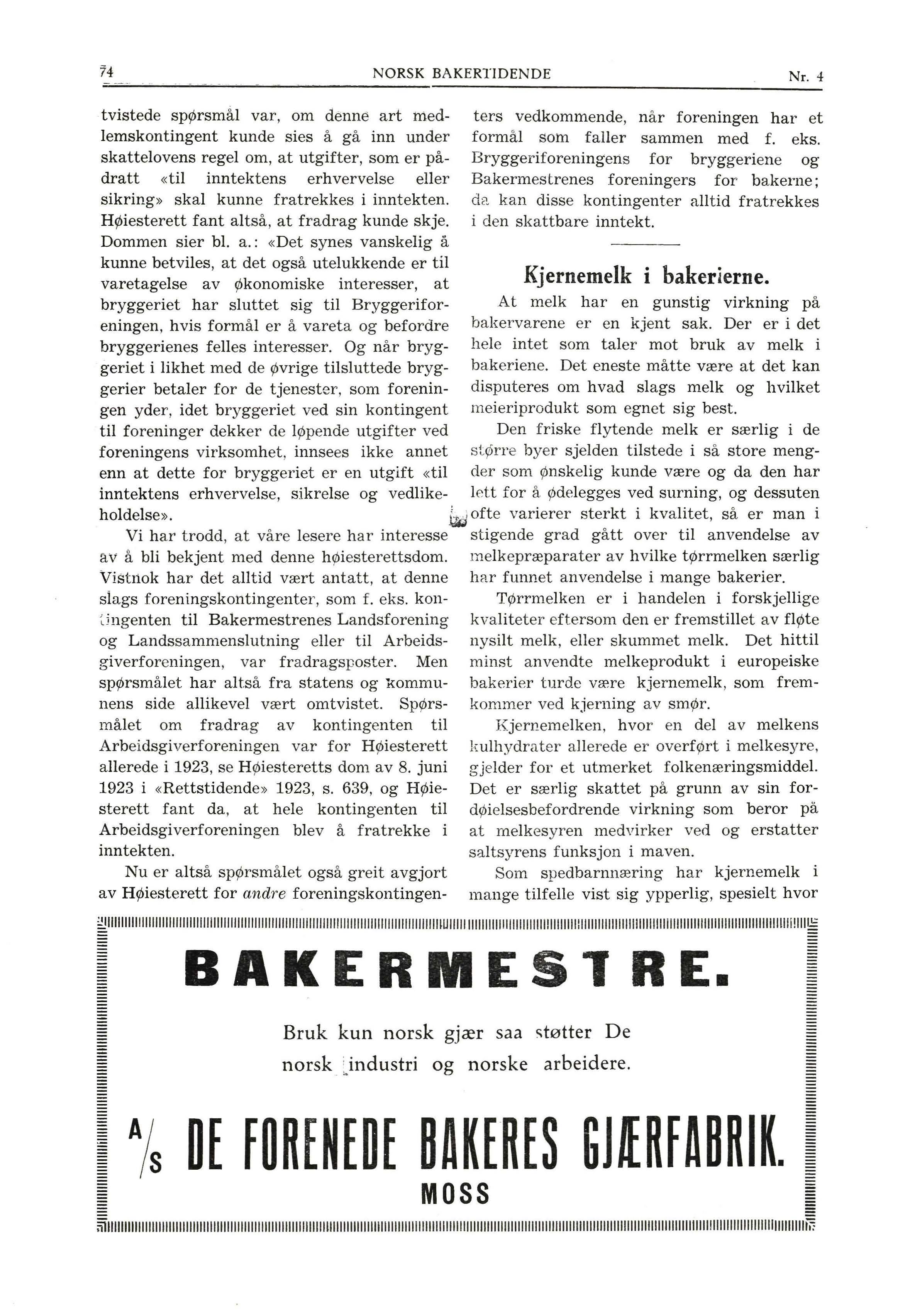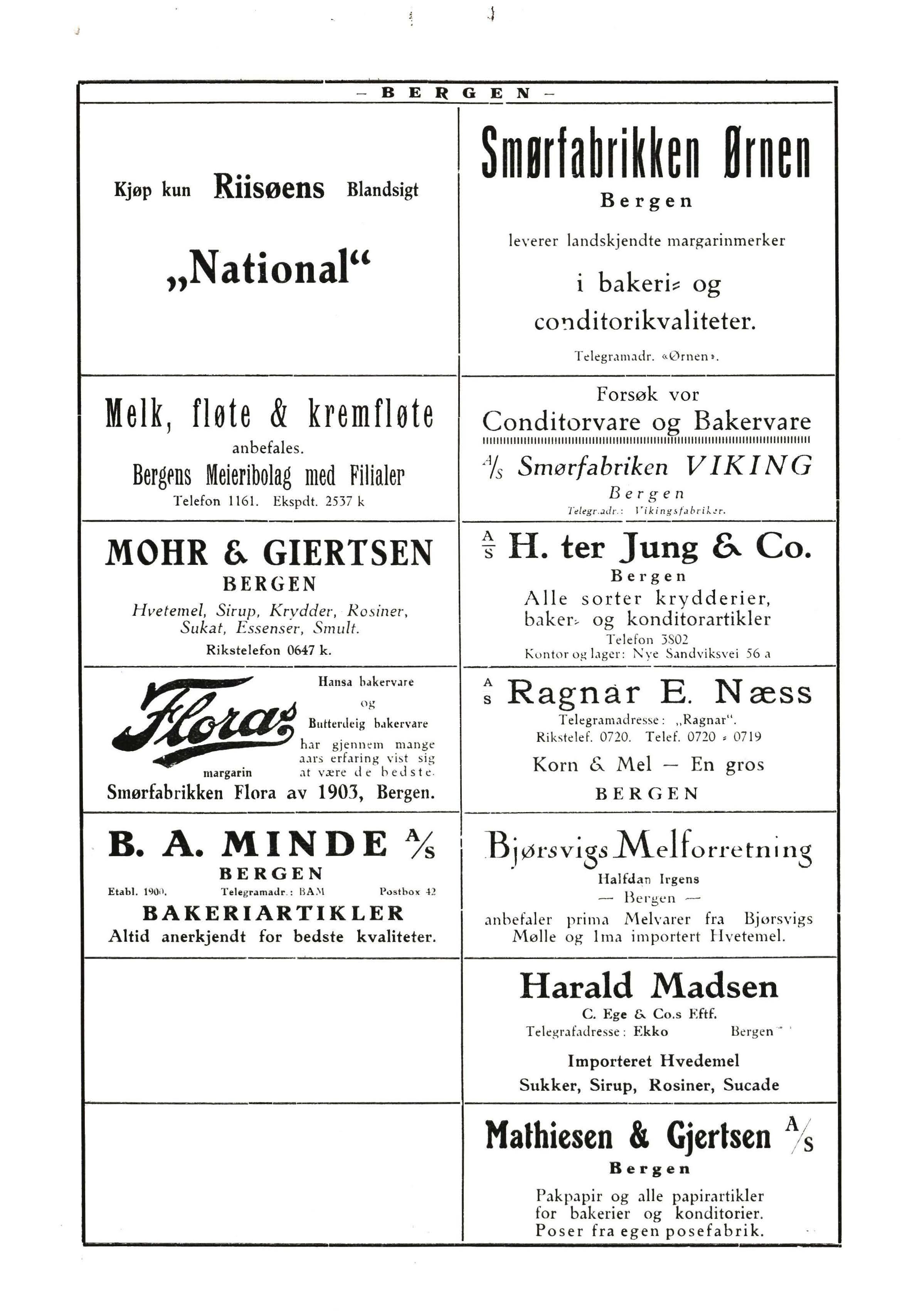 Innhold: Grensen mellem bakerfaget og konditorfaget - En purring. - Bakermestrenes organisasjonBakerne og kornsaken. - Oslo,bakerne og elektrisitetsprisene - Foreningskontingent kan fratrekkes i den skattbare inntekt - Kjernemelk i bakcricrne - foreningsnytt - Små meddelelser.