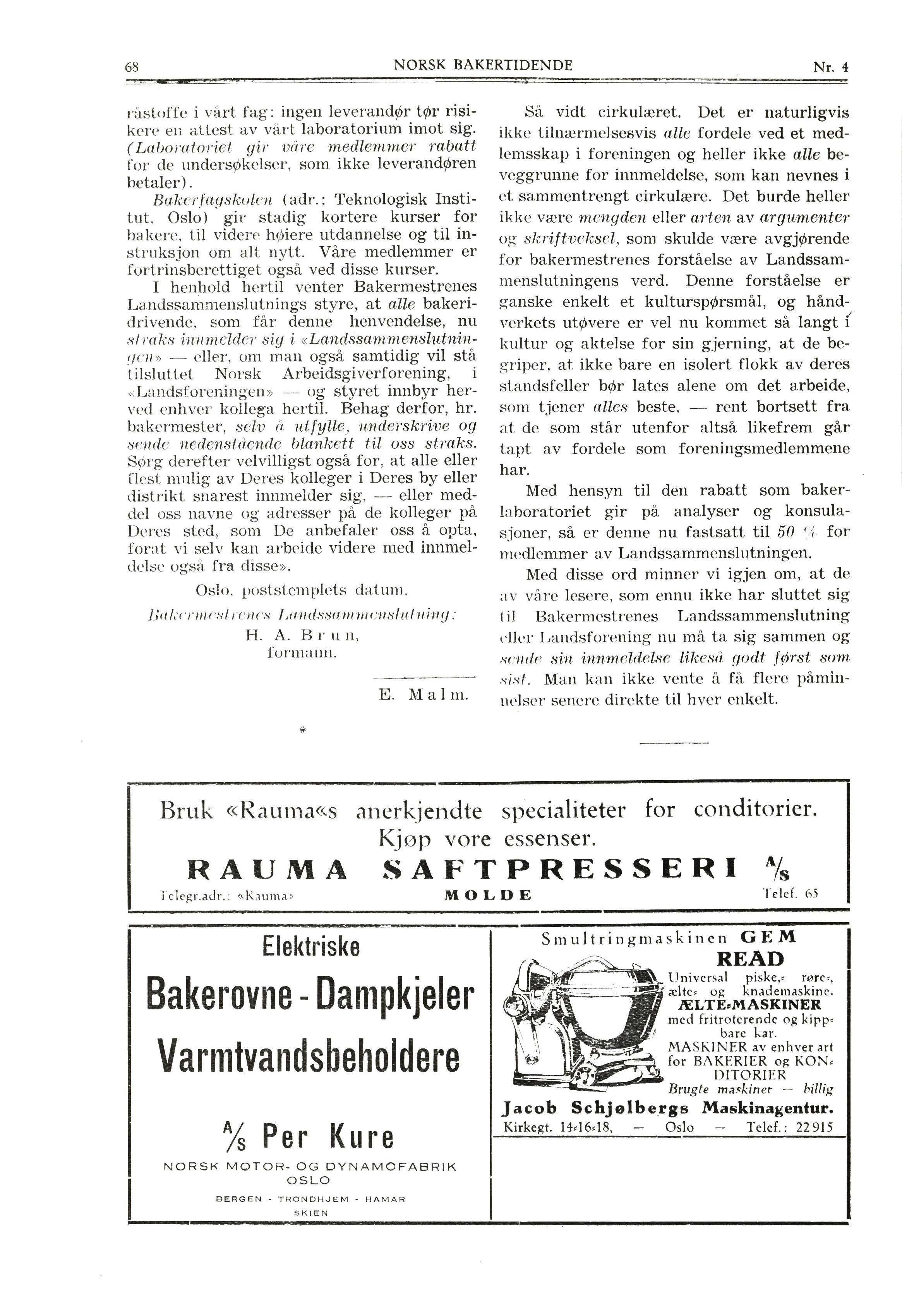 Redaktion: Bakermestrenes Landsforenings Hovedstyre Redaktør Ing. Leif Larsen, Teknologisk Institutt, Oslo. felf 64676 Ekspedisjon· A /S J. Rose Deist - Prinsensgt 7, Oslo - Tlf. 24 320 Abonnement kr. 2 40 pr a r tegnes ved postanstaltene eller i eksp.