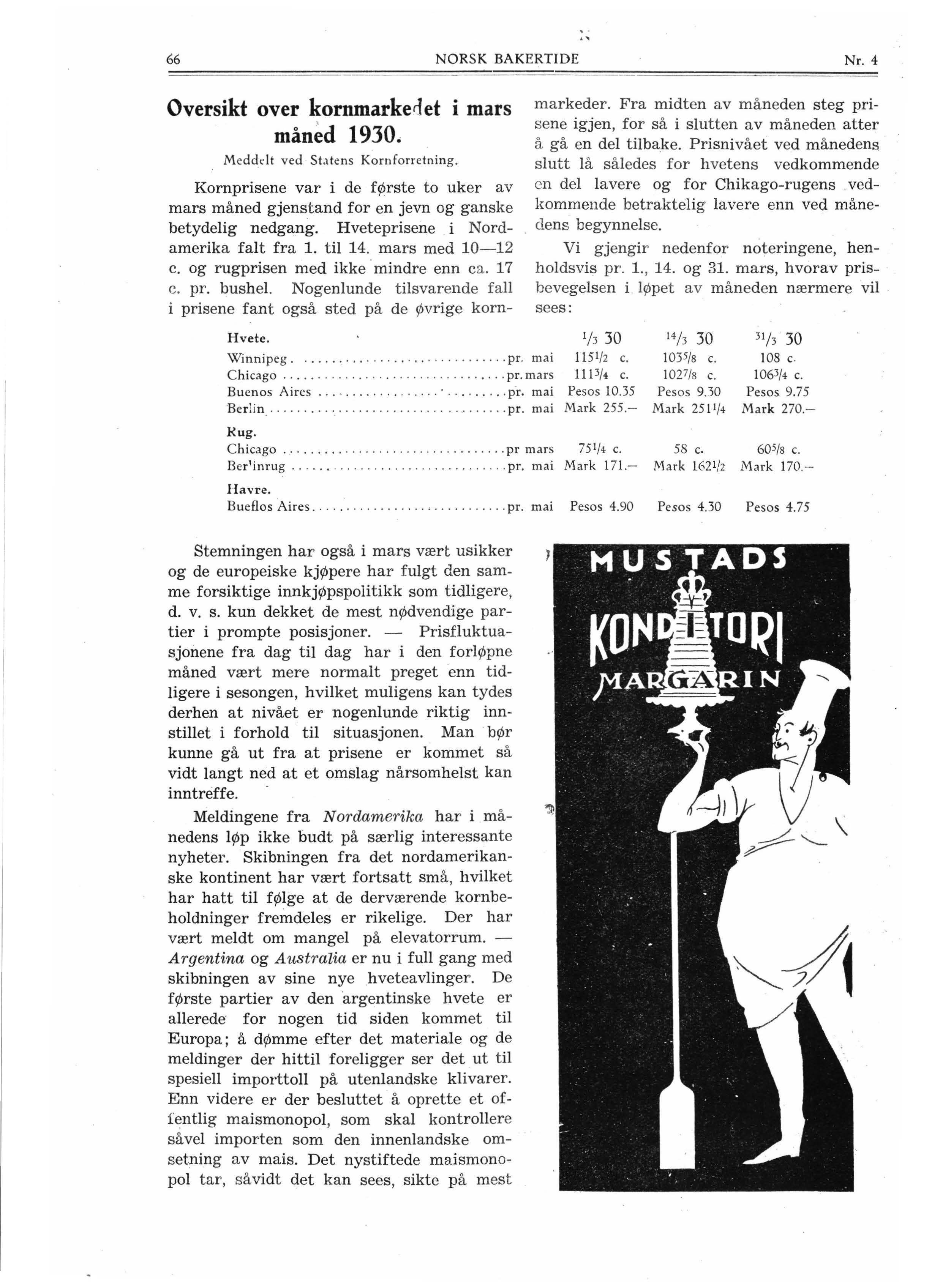 Innhold I Litt om grunnlaget for Kornmonopolets priser. - Bakning i det 16. år hundrede - Bakermester Jordfalds 40 års jubileum - Uni,Lever. - Kornmarkedet i mars. - Små meddelelser.