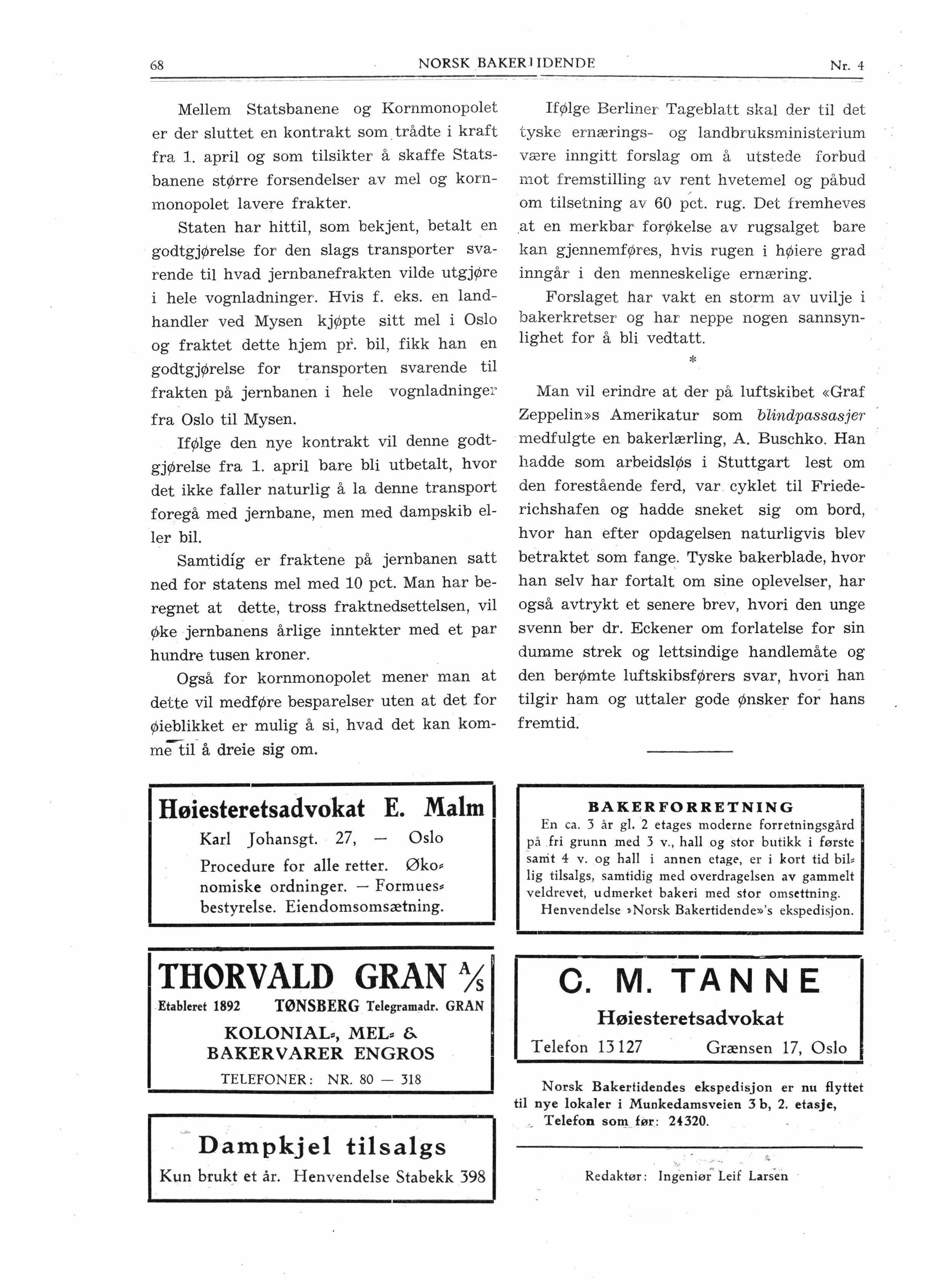 Redaktion: Bakermestrenes Landsforenings Hovedstyre R edaktør Ing. Leif Larsen, Teknologisk Institutt, Oslo. Telf. 64676 Abonnement kr. 2.40 pr. år tegnes ved postanstaltene eller i eksp . Ekspedisjon: A/S J. Rose Deist, Munked.vn. 3 b Oslo. Tlf 24320