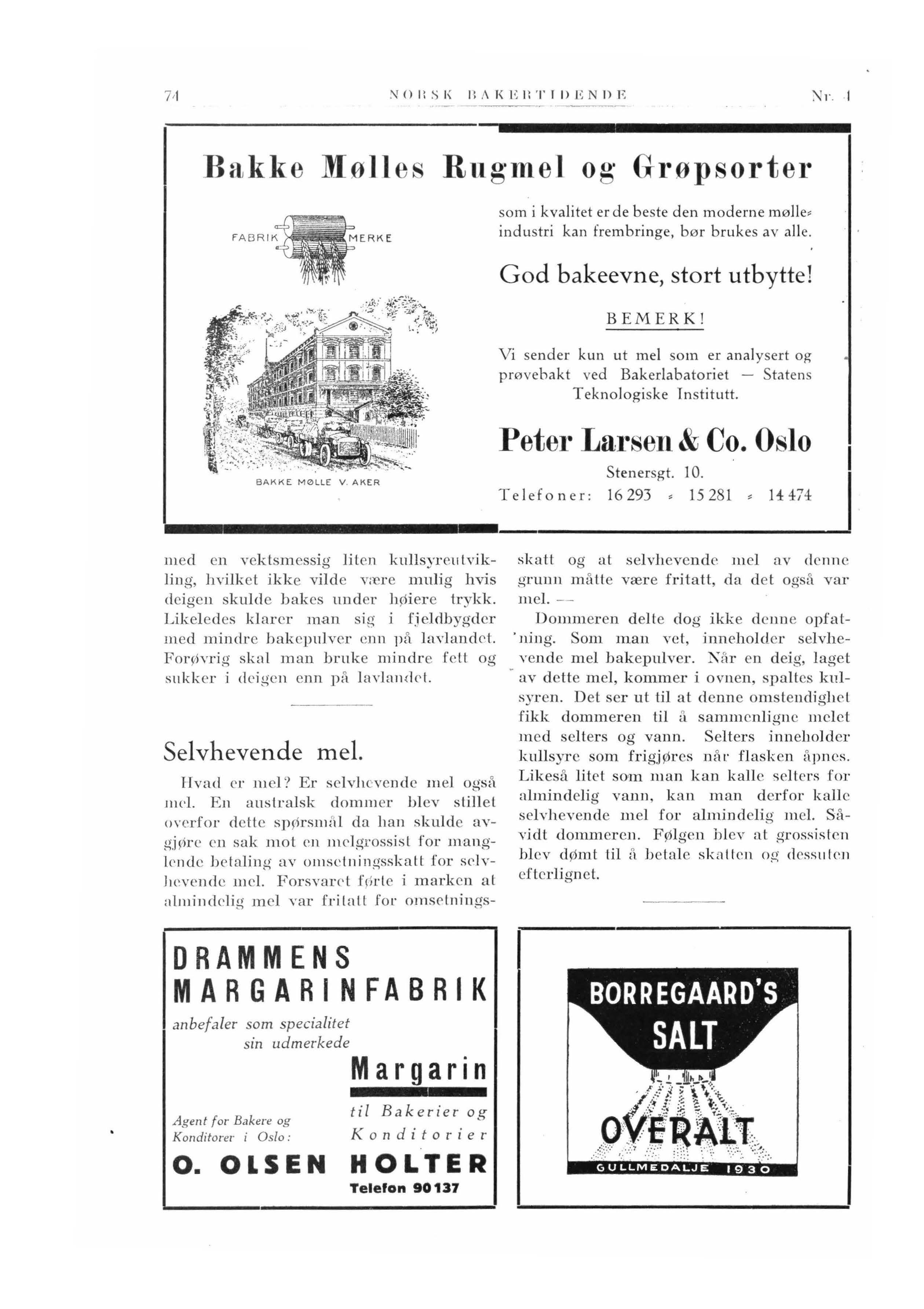 Postadresse: Postbox 2249, Oslo Mj . Utg itt av Bakermestrenes Landsforening