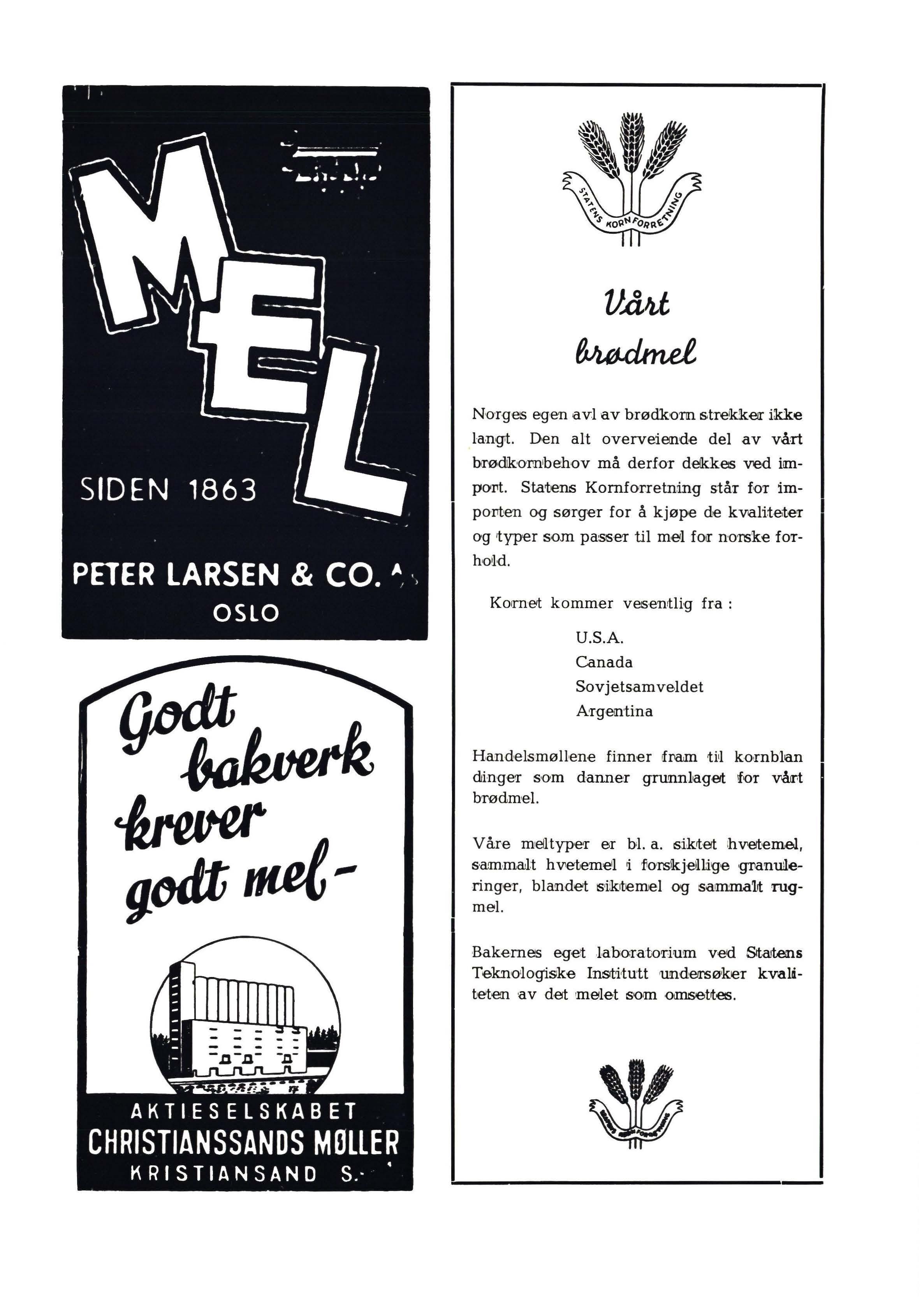 Norges egen avl av brødkorn strekker ikke langt. Den alt overveiende del av vårt brødk"ornbehov må derfor delkkes ved import. State'I15 Kornforretni ng står for importen og sørger for å kjøpe de kvali:teterr og typer som passer til meil for nons'ke forhoiJd.