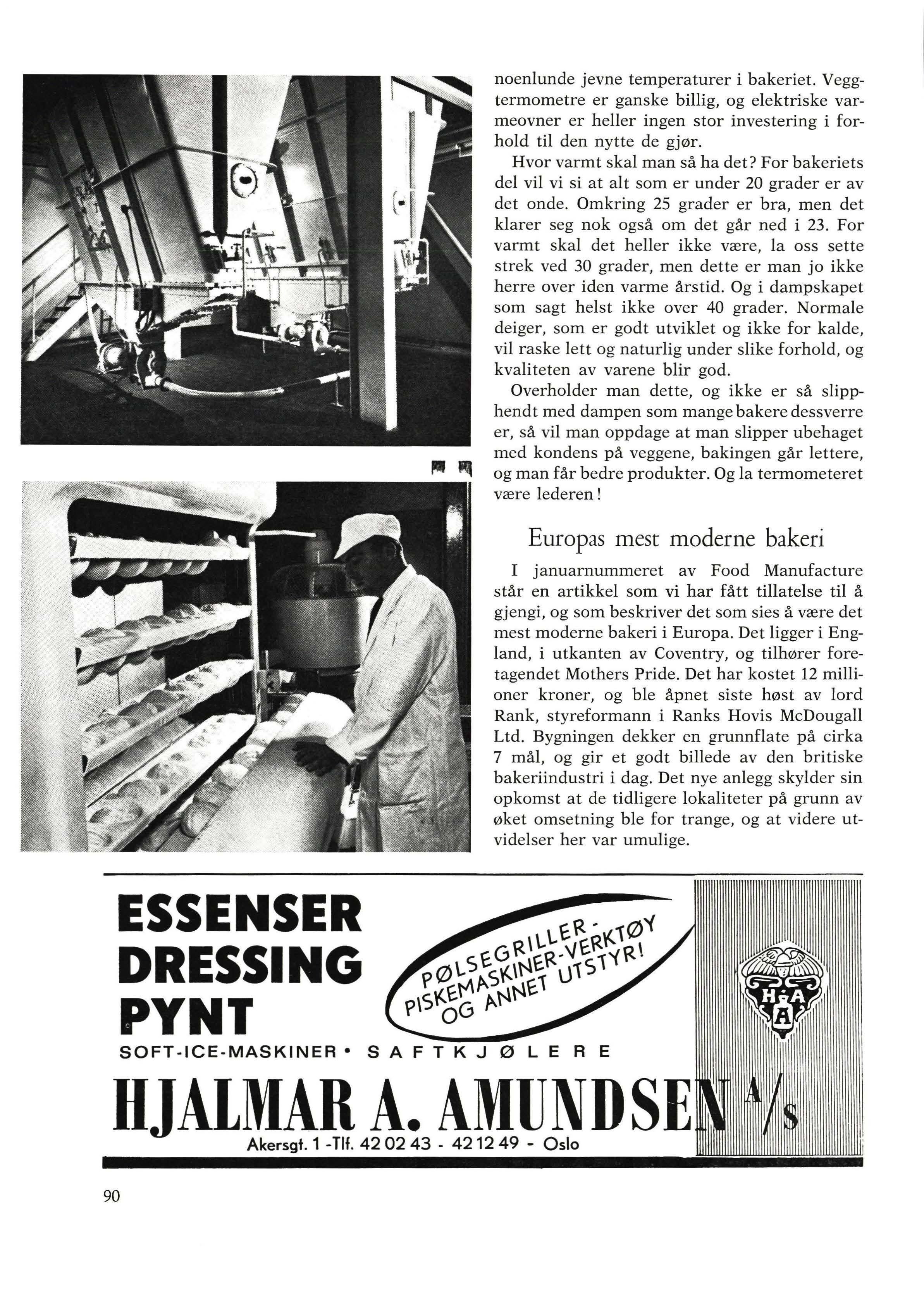I januarnummeret av Food Manufacture står en artikkel som vi har fått tillatelse til å gjengi, og som beskriver det som sies å være det mest moderne bakeri i Europa. Det ligger i England, i utkanten av Coventry, og tilhører foretagendet Mothers Pride. Det har kostet 12 millioner kroner, og ble åpnet siste høst av lord Rank, styreformann i Ranks Havis McDougall Ltd. Bygningen dekker en grunnflate på cirka 7 mål, og gir et godt billede av den britiske bakeriindustri i dag. Det nye anlegg skylder sin opkomst at de tidligere lokaliteter på grunn av øket omsetning ble for trange, og at videre utvidelser her var umulige.