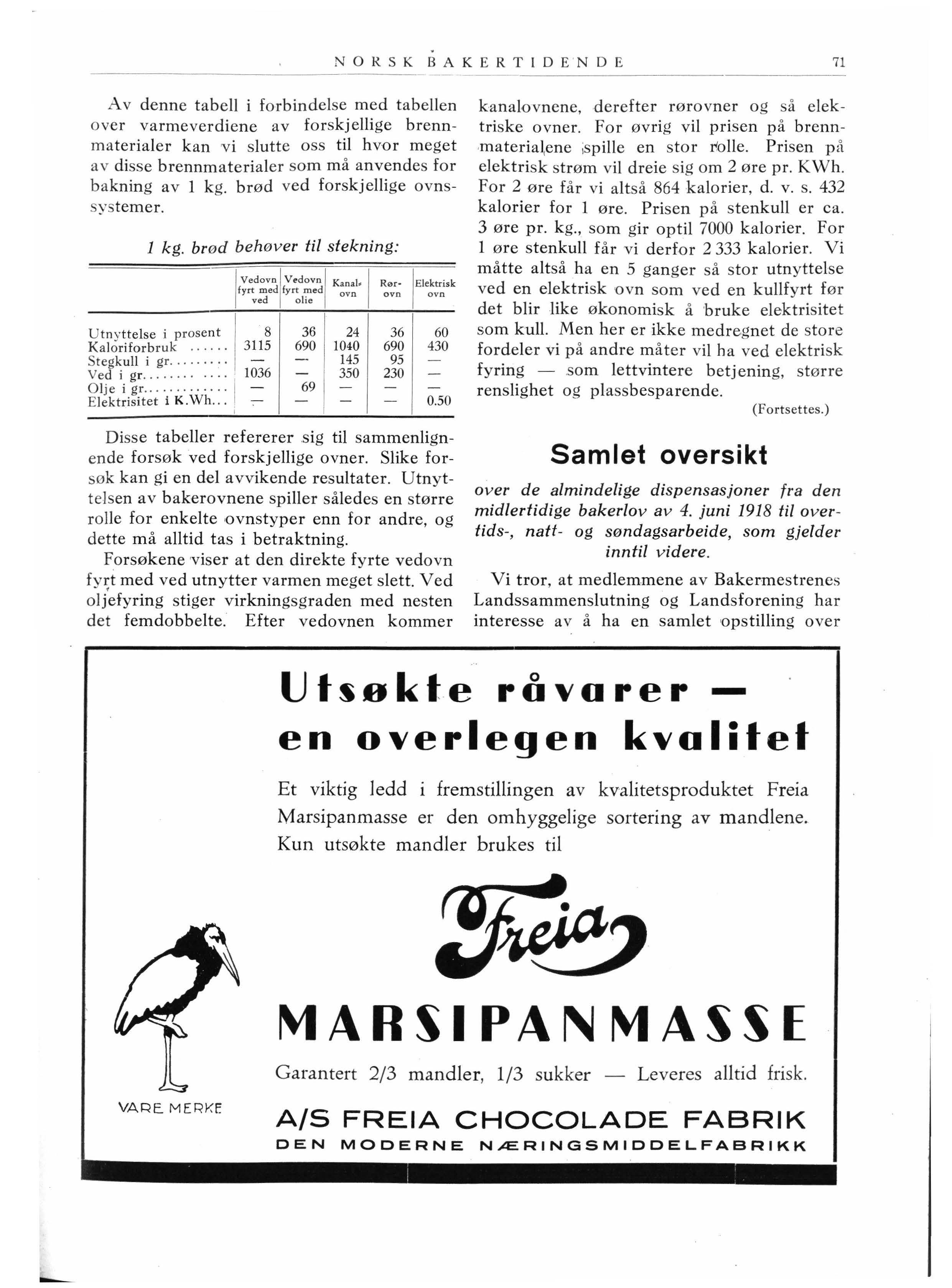 Disse t abe ller refererer sig til sammenlignende forsøk ved forskjellige ovner. Slike forsøk kan gi e n del avvikende resultater. Utnyttelsen av bakerovnene spiller således en større rolle for enkelte ov nst yper enn for andre, og dette må alltid tas i betraktnin g.