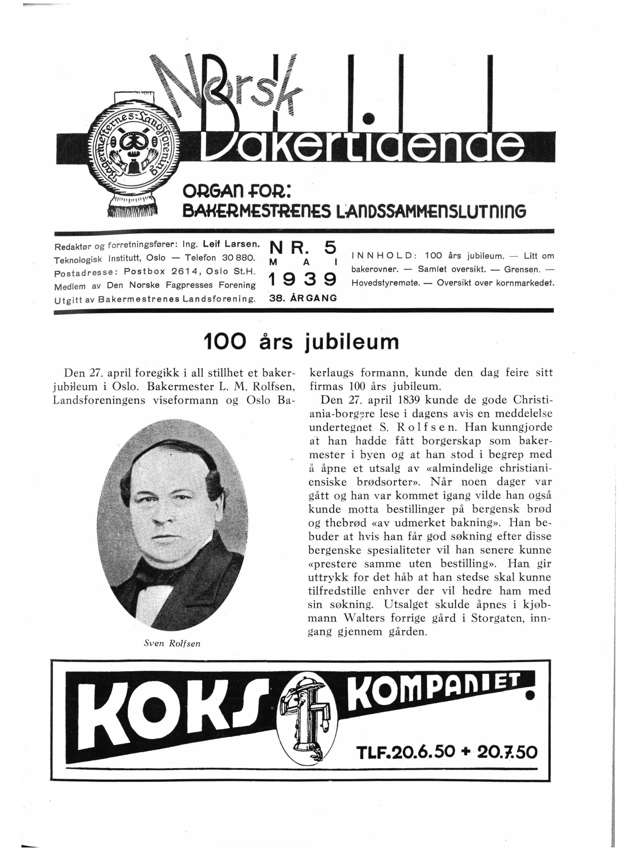 Utgitt av Bakermestrenes Landsforening 38. ÅRGANG