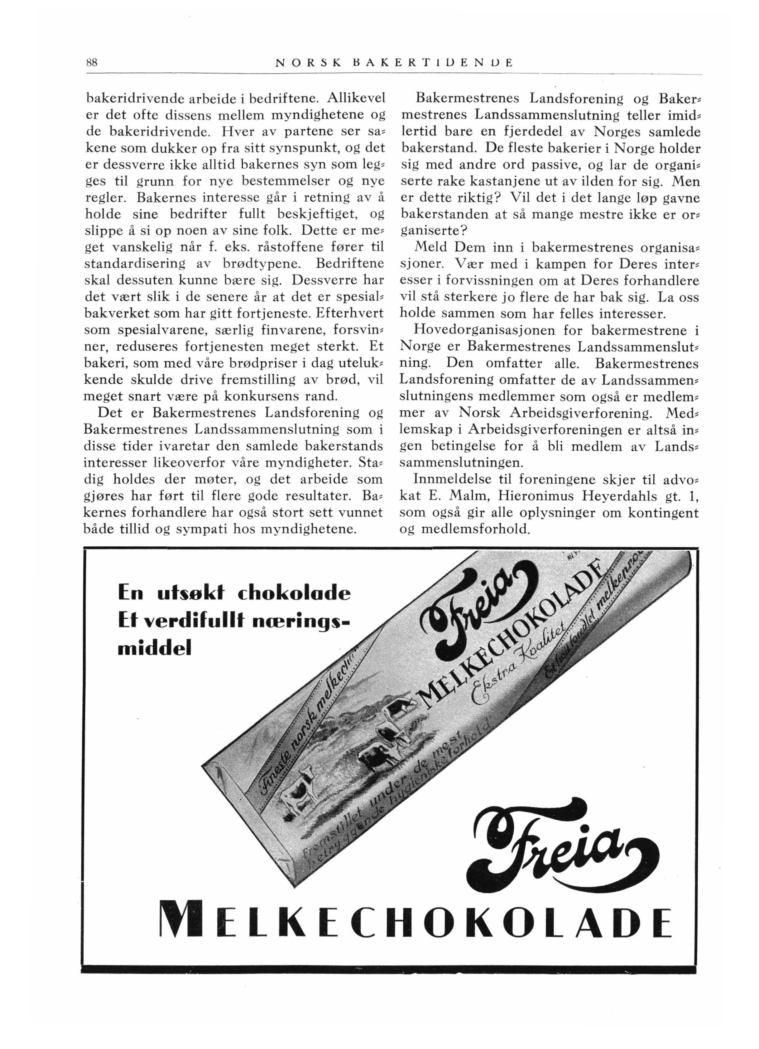 Det er Bakermestrenes Landsforening o g Bakermestrenes Landssammenslutning som i disse tider ivaretar den samlede bakerstands interesser likeoverfor vå re myndigheter . Sta , dig holdes der møter, og det arbeide som gjøres har ført til flere gode resultater . Ba , kernes forhandlere har også stort sett vunnet både tillid og sympati hos myndighetene.
