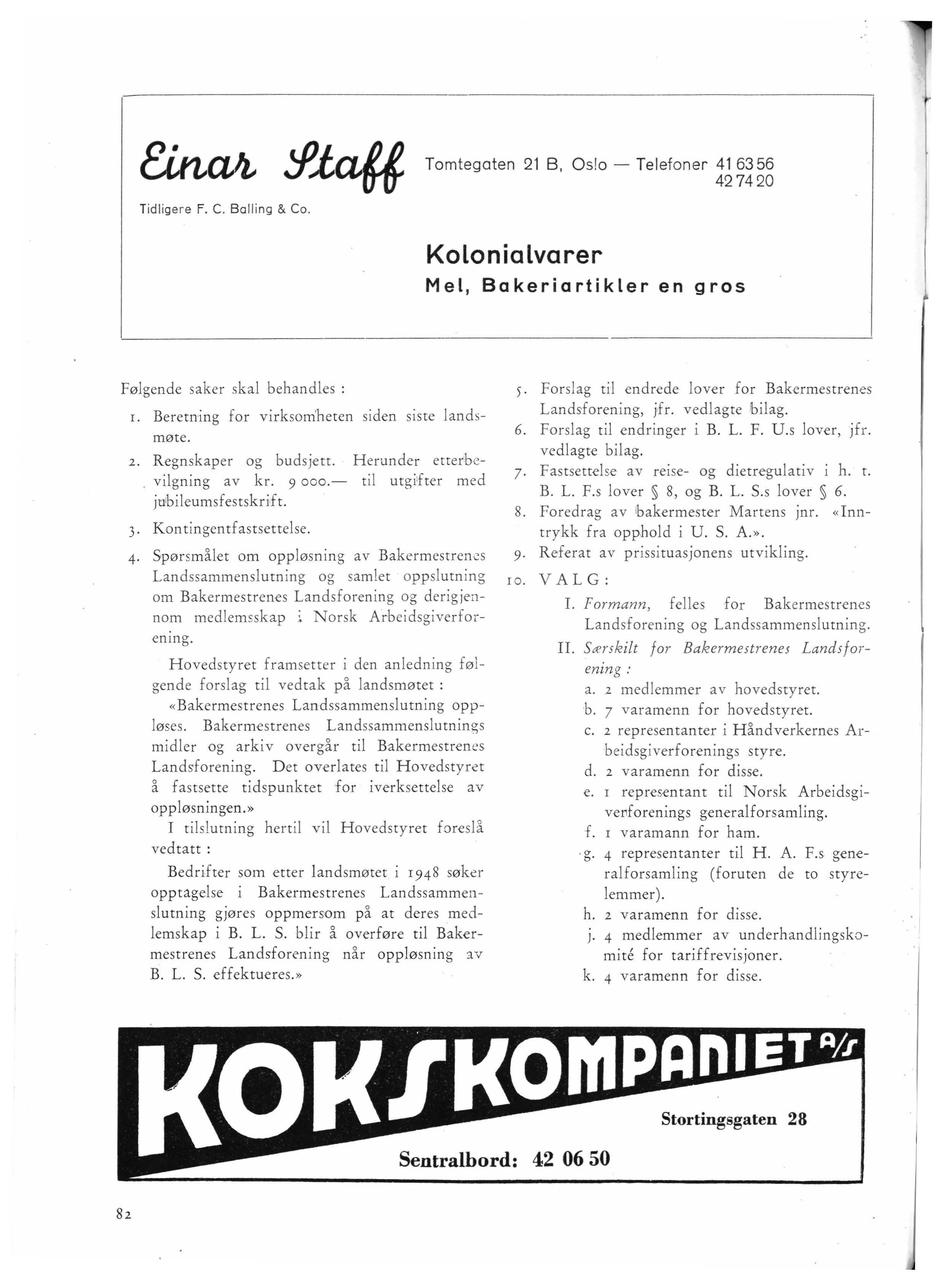 III. S æ rskilt for Bakermestrenes Landssammenslutning :