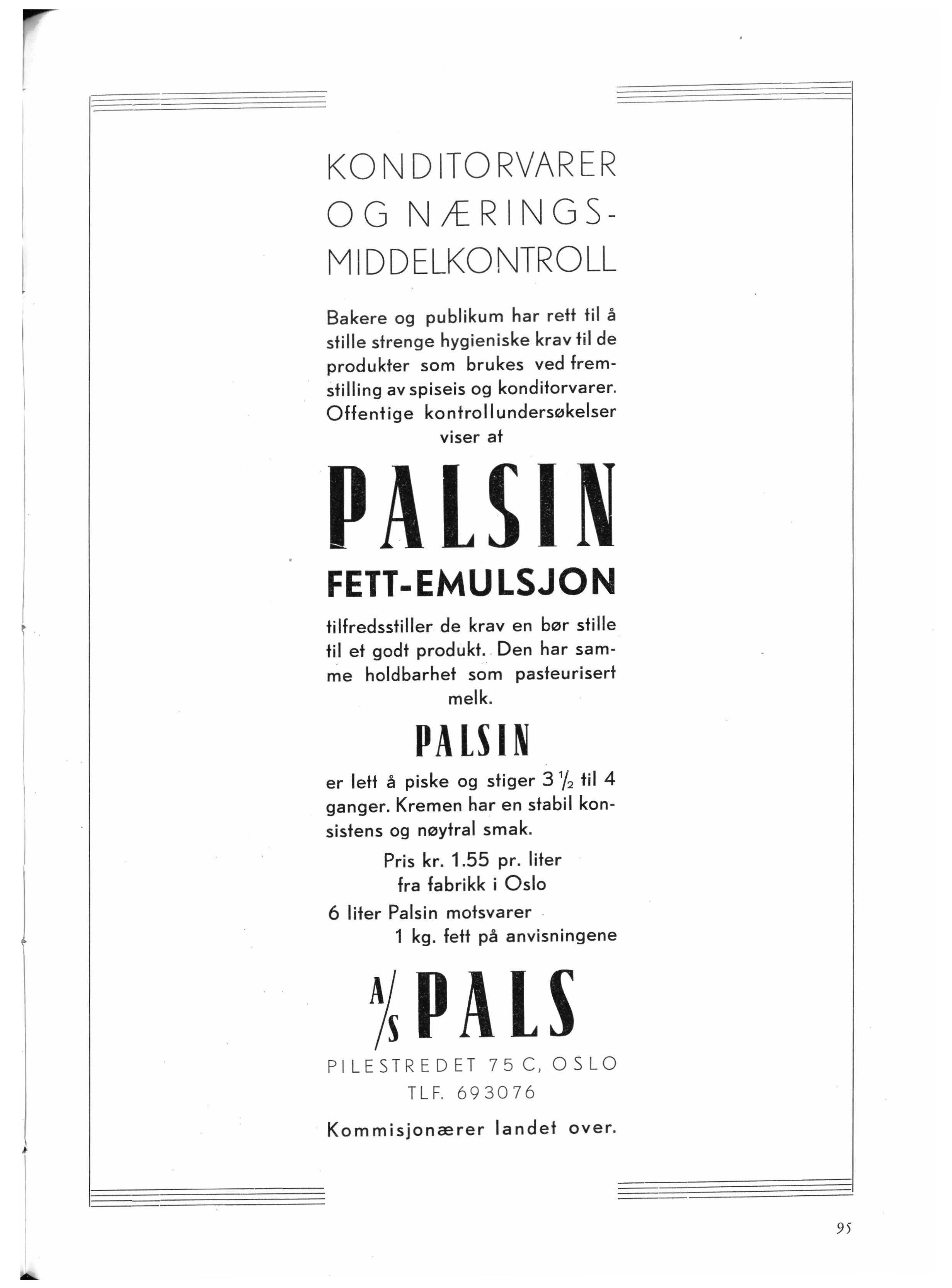 Pris kr. 1.55 pr. liter fra fabrikk i Oslo