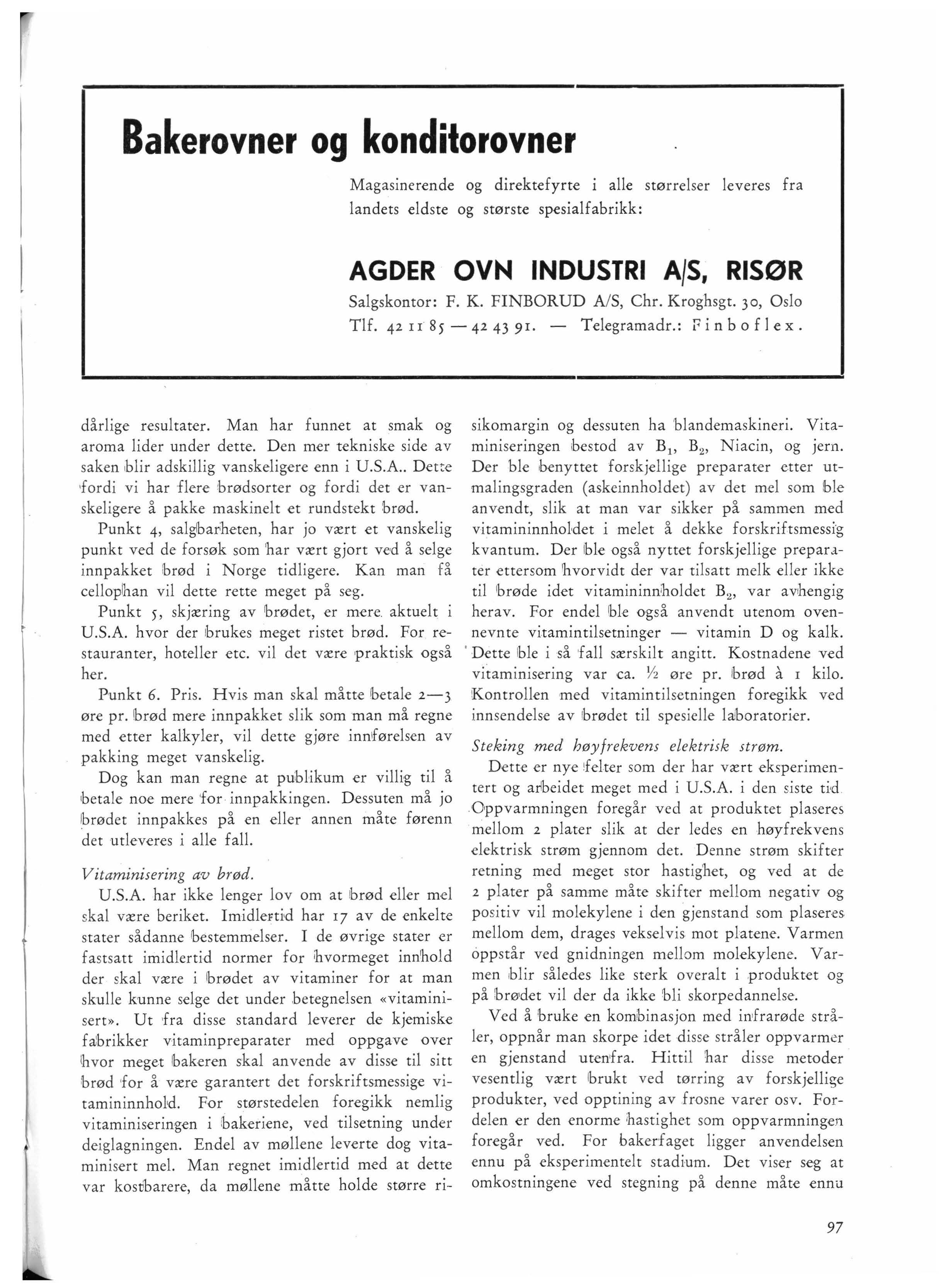Salgskontor: F. K. FINBORU D A / S, Chr. Kroghsgt. 30, Oslo Tlf.421185-424391. - Telegramadr.: Pinboflex.