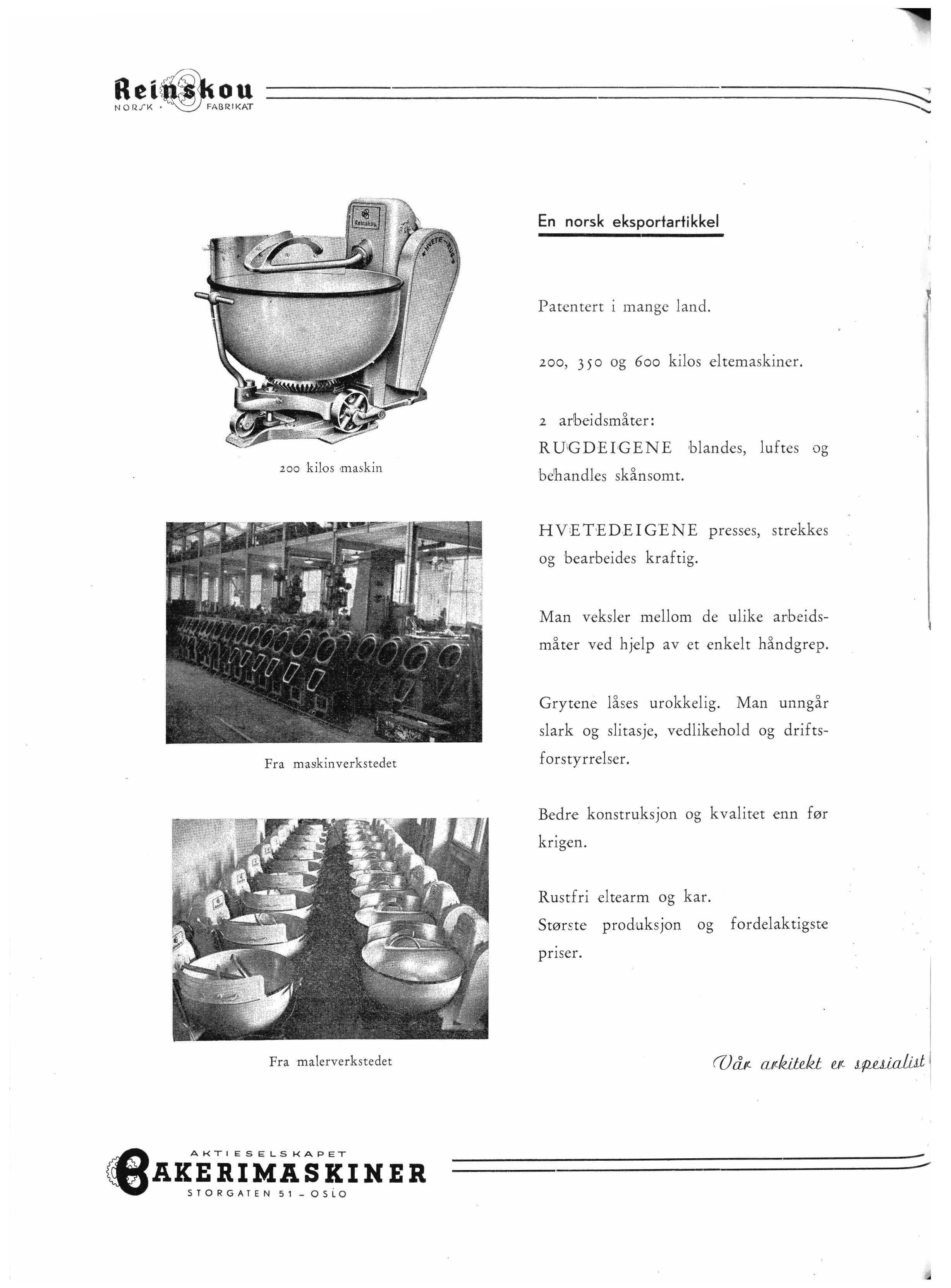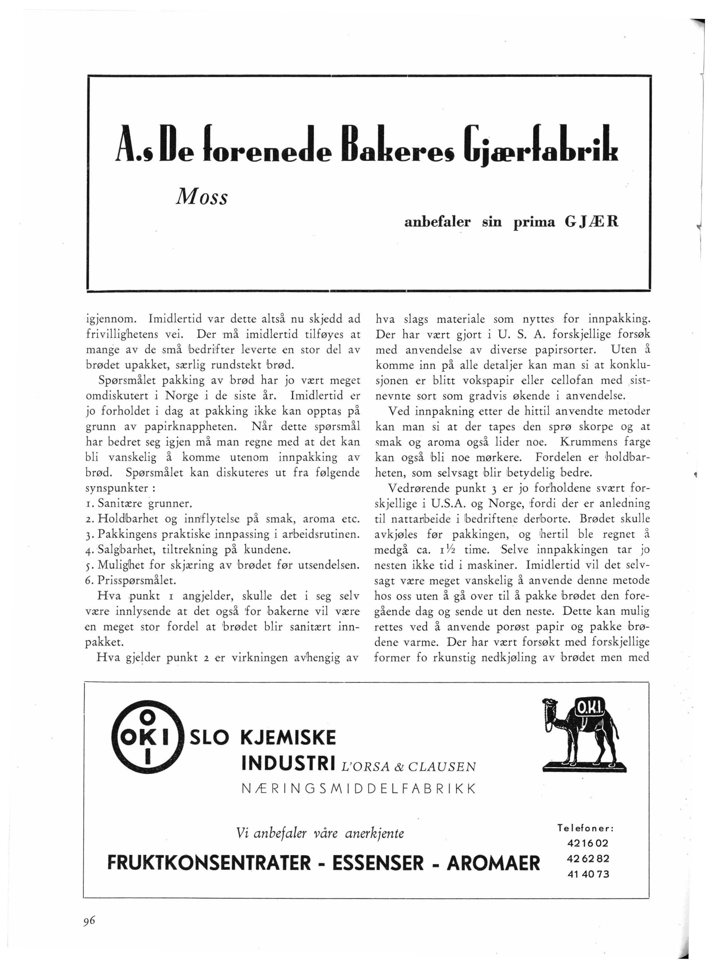 Denne interesse besjeler ham den dag i dag, like intenst som den gang han besluttet seg for å gå inn for disse sakene. Man går ingens interesse for nær når man sier at direktør Osmundsen er en av pionerene når det gjelder den modernisering av norske bakerier som har fonnet sted r vår tid. Han vakte interessen, en interesse som har gitt til resultat at det norske bakeri i dag står på et meget høyt nivå. Nu er det riktignok så at direktør Osmundsen ikke direkte har •hatt særlig stor innflytelse på utviklingen i den senere tid. Han lble ikke persona grata for flerheten av de norske bakere da han startet Kristiania Brødfabrikk, som /bakerne naturlig nok kom til å betrakte som en stygg konkurrent. En skal dog være oppmerksom på at det neppe var ønsket om å konkurrere med !bakerne som opprinnelig lå til grunn for opprettelsen av Kristiania Brødfabrikk. Det var samarbeide som var direktør Osmundsens ide, et samat1beide i likhet med det som allerede den gang tbestod mellom de kjøbenhavnske brødfabrikker og lbakerne. Brød ligger vel tilrette for industriell tilvirkning, i motsetning til bakeryrkets spesialiteter, som jo også gir den beste fortjeneste.