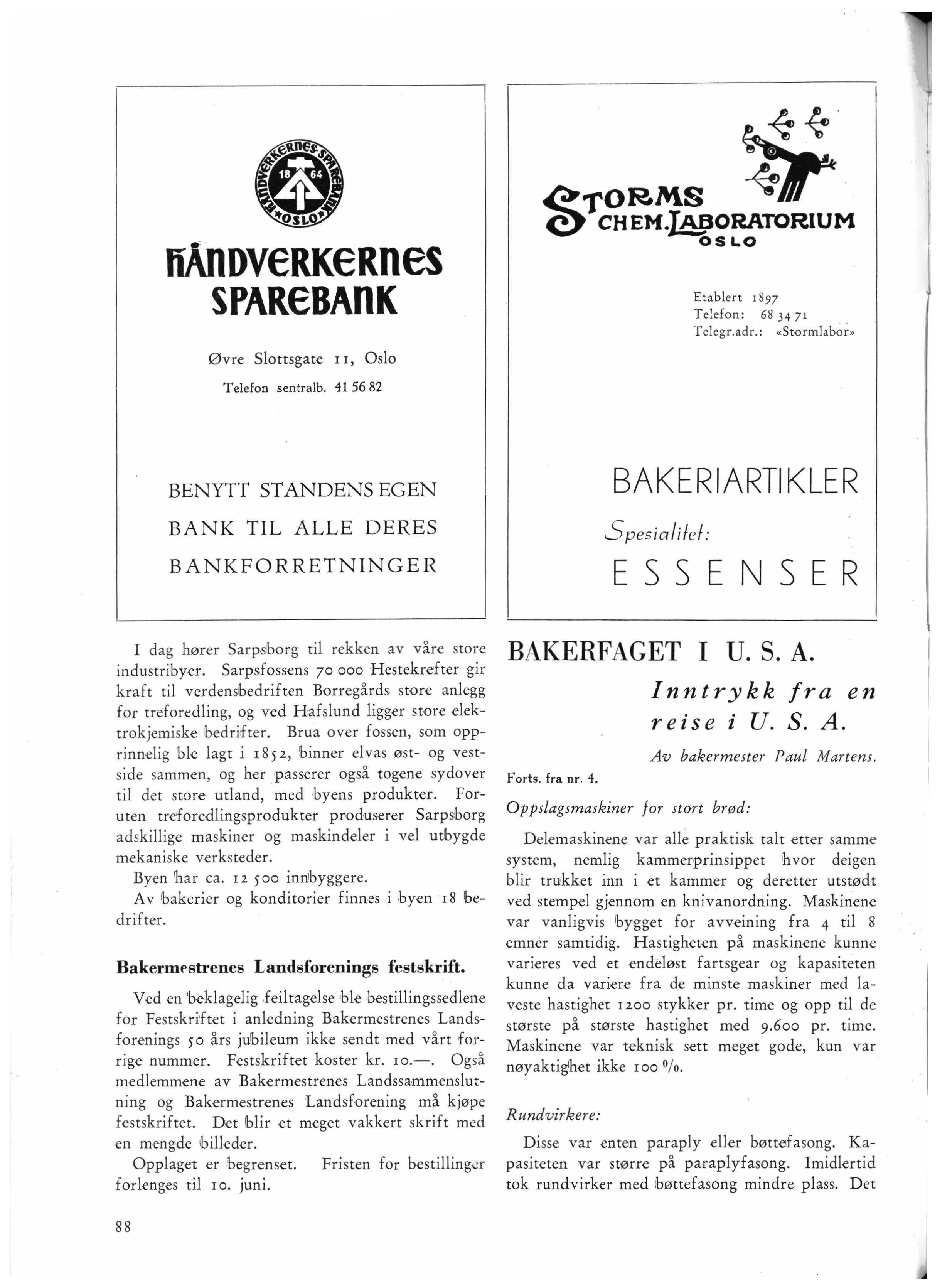 Jeg håper de t har lykkes gjen n om disse artikler å gi et lite inn t rykk av bakerfaget i U S.A og de forskjellige problemer man arbei d et med for tiden. Det er jo ikke mulig å komme mere detaljert inn på de e n kel t e spørsmål enn der har v ært gjo r t h e r, hvis artiklene skal holde et rimelig omfang. Som e:1 sam let konkl usjon var det mitt inntrykk at hakerfaget i U .S.A. ble dreve t forholdsvis ak t ivt for tiden. Man søk t e stadig å være på høyden med nye t i n g og også lbr;m sjemessig ble der arbeidet sterk t for å ho lde 'fage t på høyden i konkurranse med