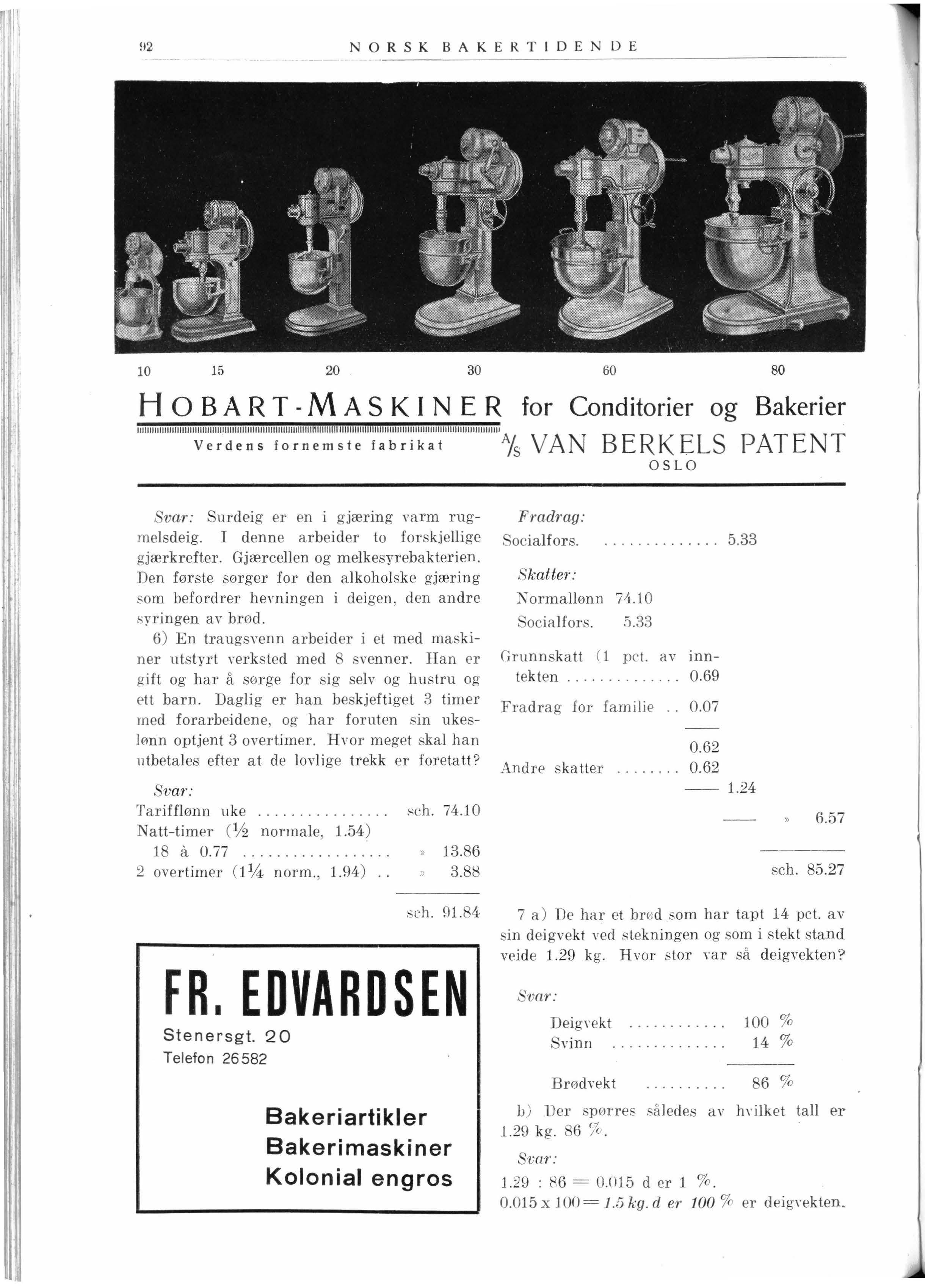 Teknologisk Institutt, Oslo - Telefon 30880 og bakerfagets historie _ Litt om kalkulasjon. -