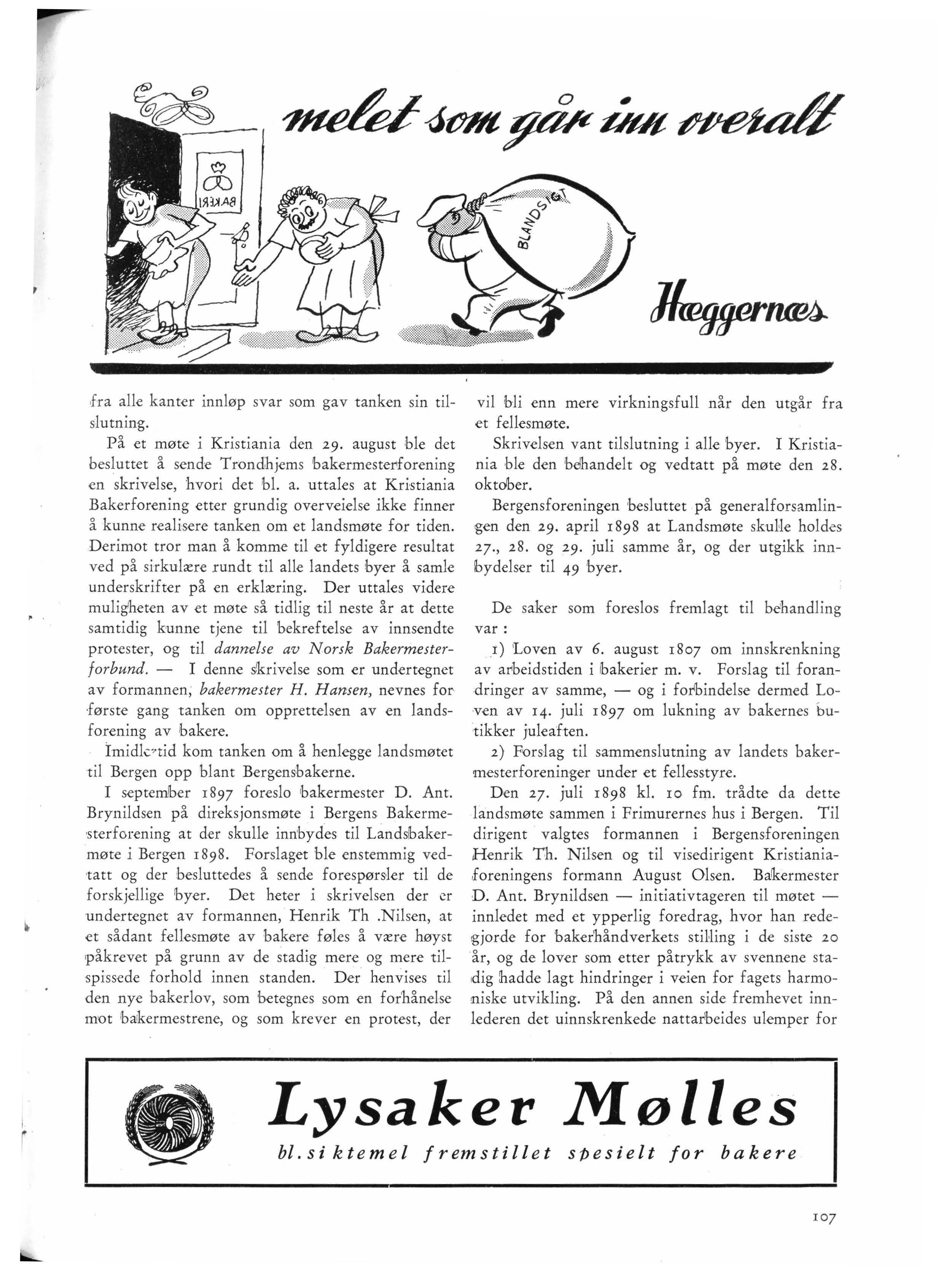 Når vi 'bakermestre i Norge om kort t i d skal samles t il landsmøtet på Larkollen, så blir dette møte ikke bare et ordinært landsmøte, men et julbileumsmøte hvor vi skal feire vår landsforenings beståen gjennom femti år. Gjennom alle di$se år har landsforeningen vokset seg stadig større og sterkere inntil den nå er blitt en institusjon av så stor betydning for oss bakermestre at vi ikke lenger kunne tenke oss muligheten av å skulle være den foruten.