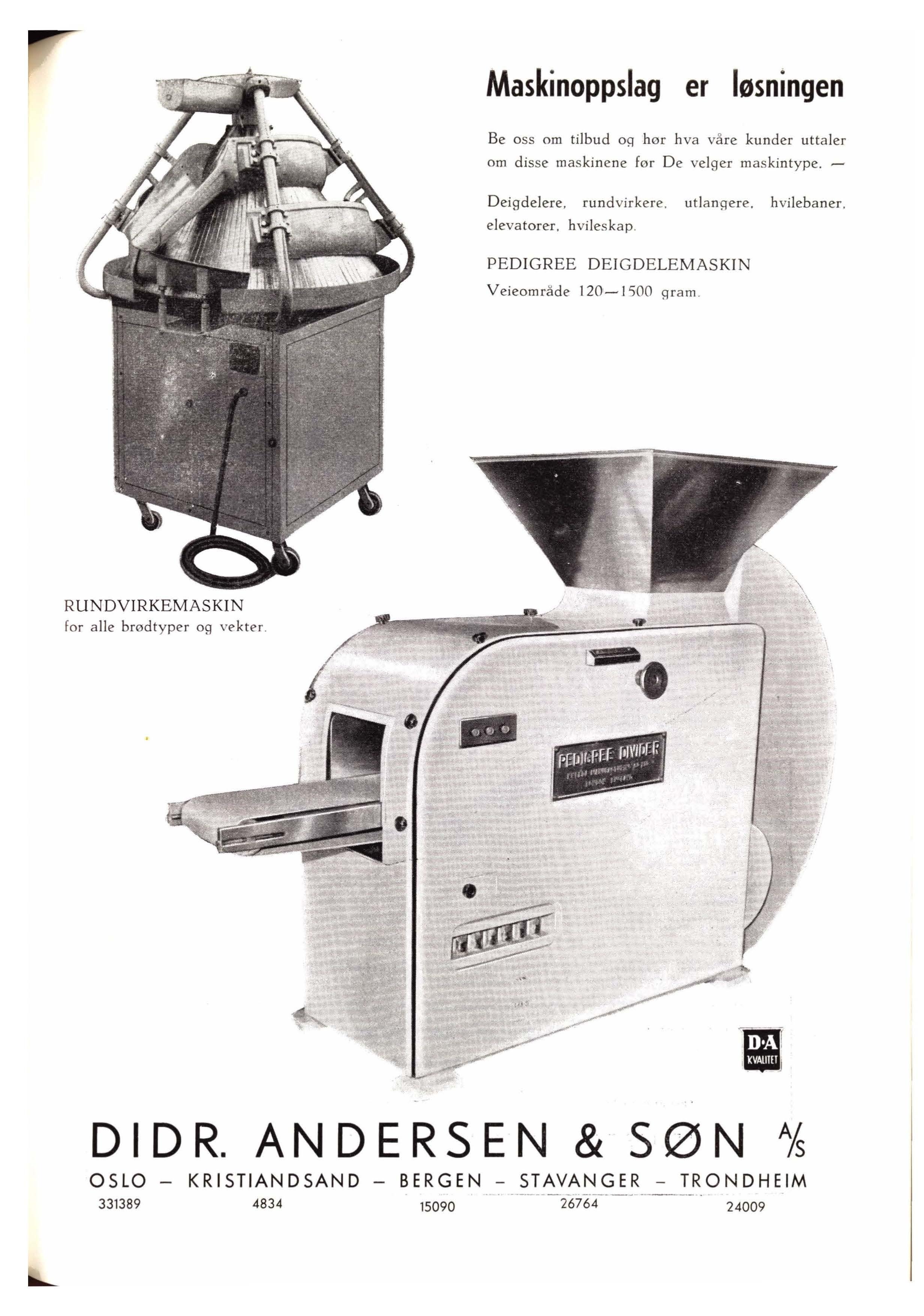 Dr. Schulerud opp lyste at Bakerlaboratoriet tar s ikte p å å tre s t ø ttende til ved slike oppgaver. Avdelingen har tidli gere vært rådgiver ve d bakerianlegg og v il gjerne ut vi de denne virks omhet , idet en a v den s funk s jo n ærer h ar deltatt i rasjonaliseringskurser i Sverige . Vider e h ar man bygget opp et kartotek over maskintyper som selges i Norge, og ut fra dette kan man gi alle objektive opplysninger m. h t. tekniske data. Man vi l også gjerne h a den be st m uli g kontakt med maskinforha ndlerne og være til nytte for begge parter.