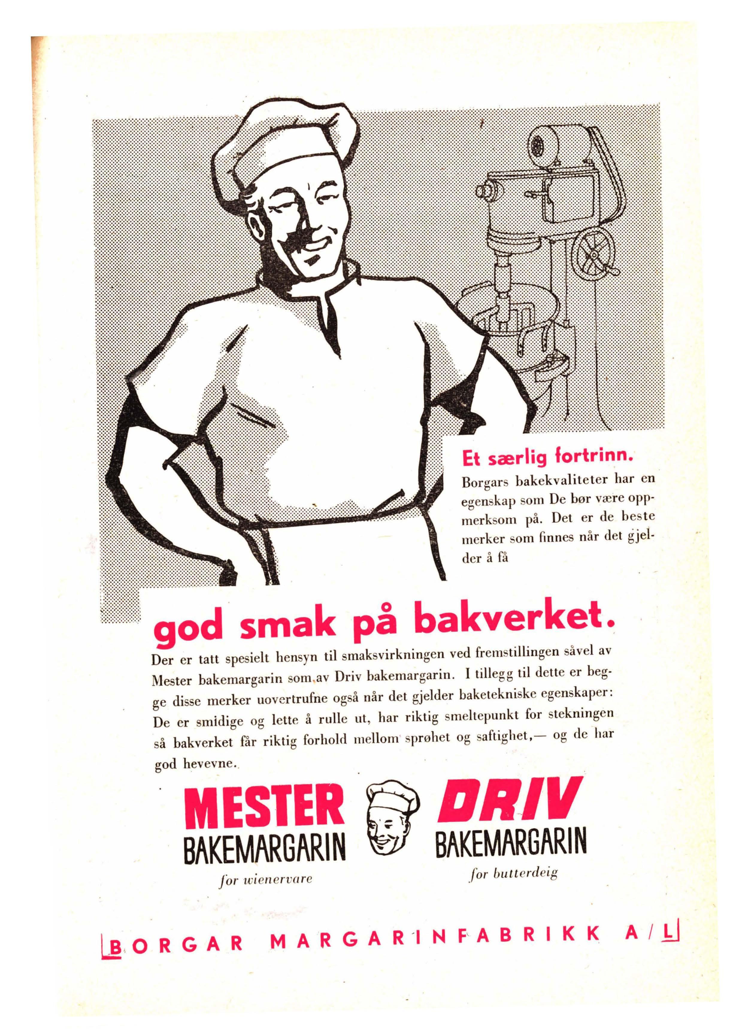 Der er tatt spesielt hen sy n til smaksvirkningen ved frem s tillingen såve l av Mester bakemargarin so m av Driv bakemar garin. I tille gg til dett e er begge disse merker uov ertrufne og så når det gjelder bak e tekni ske egenskaper: