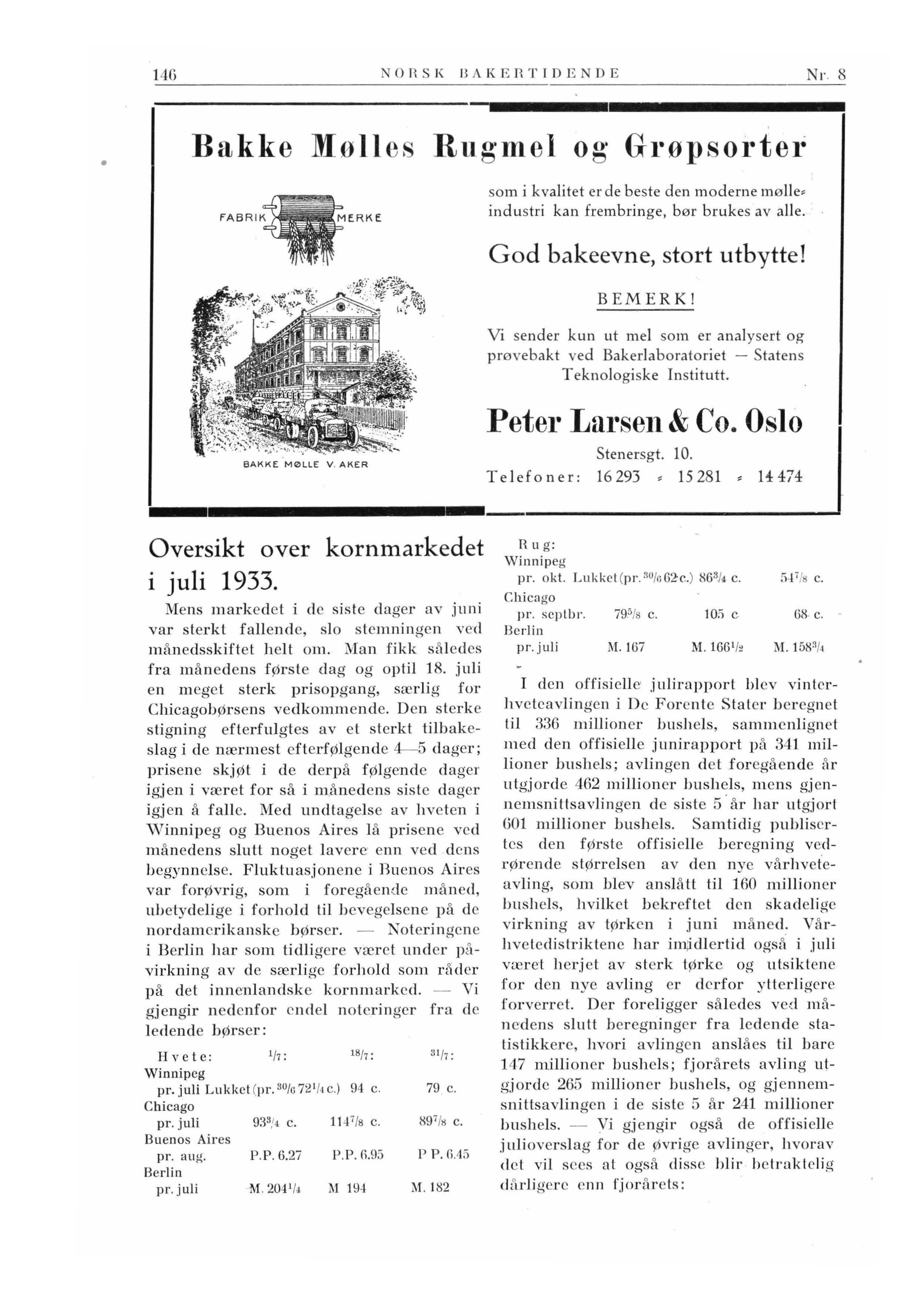 I 11 n hold : Pri\'il e giurn , Brød\',cg l - :Yledclelelser fra T ysk l and - ~leisnu e og bakermasker. - N [1 r fanatiker e l øper løpsk - U tstillin g i Tivoli. - Hvorledes navnet «Giffcl» ops t od. - !\!Met og midlet. - ·1· .Julius Foseid. - Korte medd e l e l ser. - Ov e rsikt over kornmarkedet i juli 193'.l.Annonsørfortegnelse. -