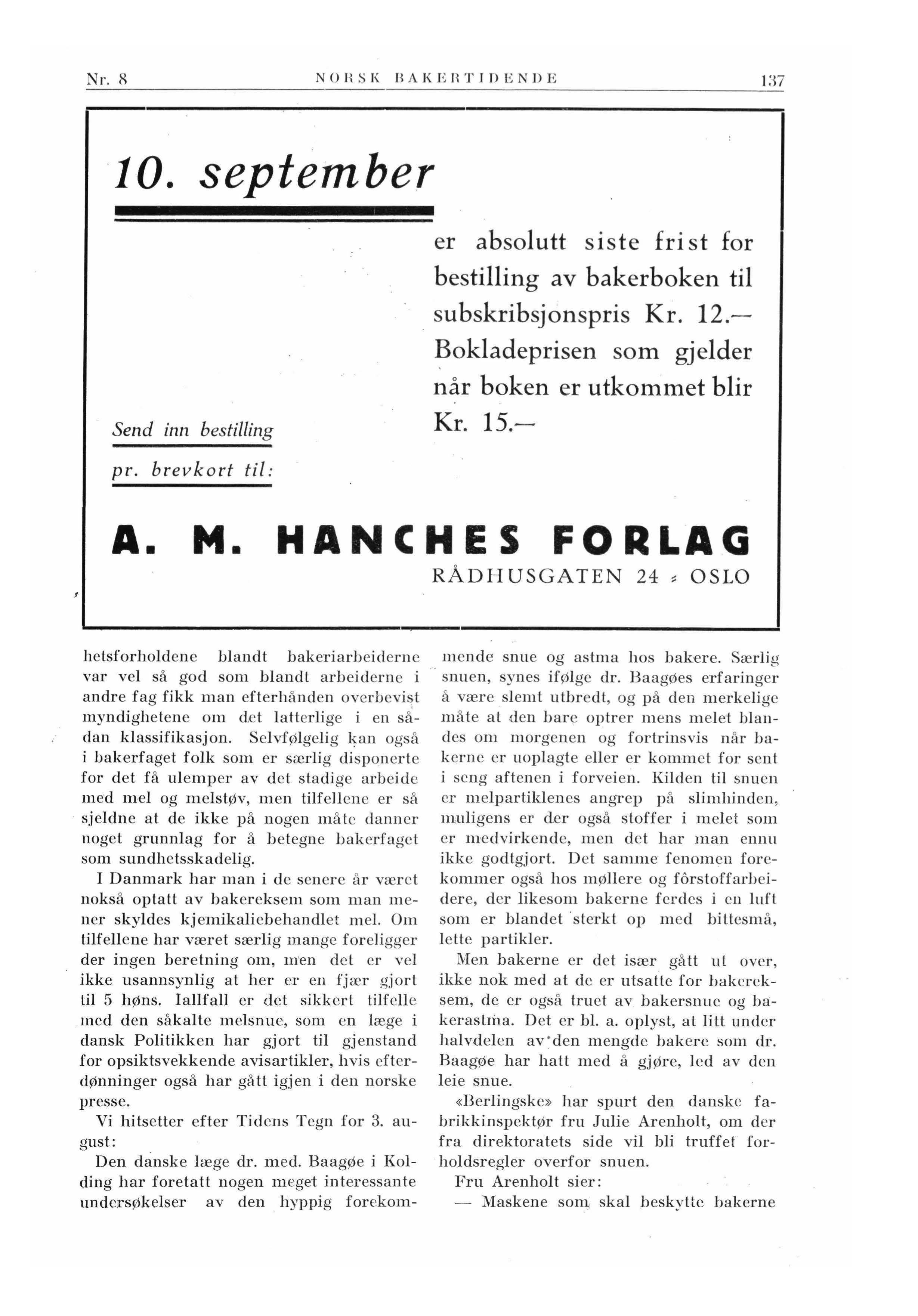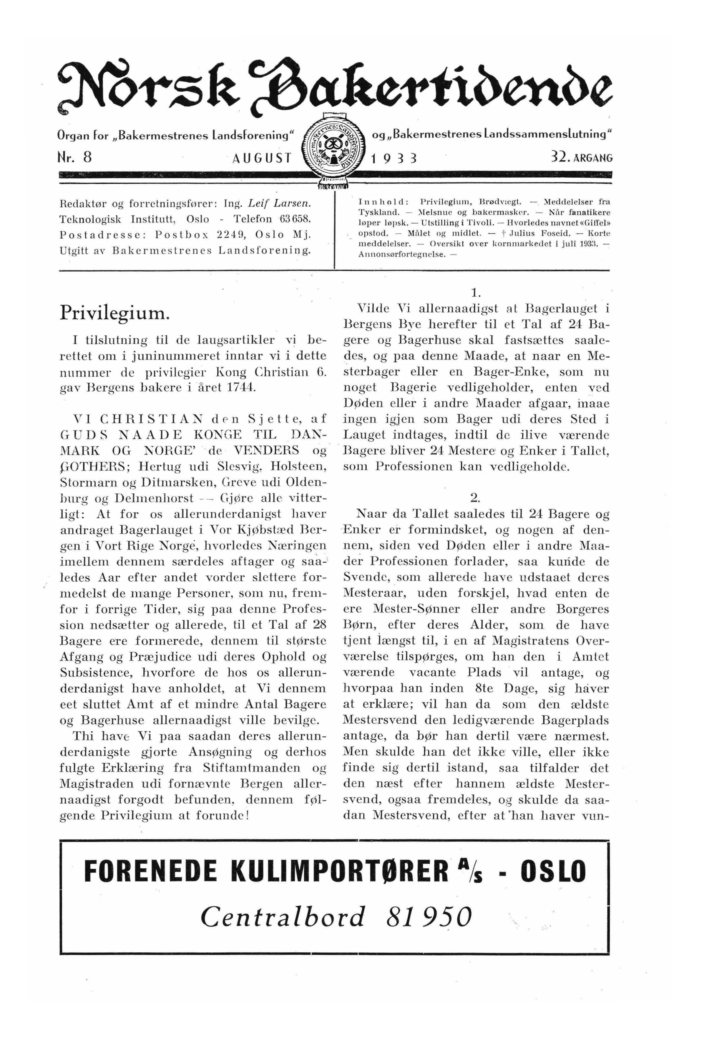 a ugu s t for N o rs k Bake r tid end e, Oslo.