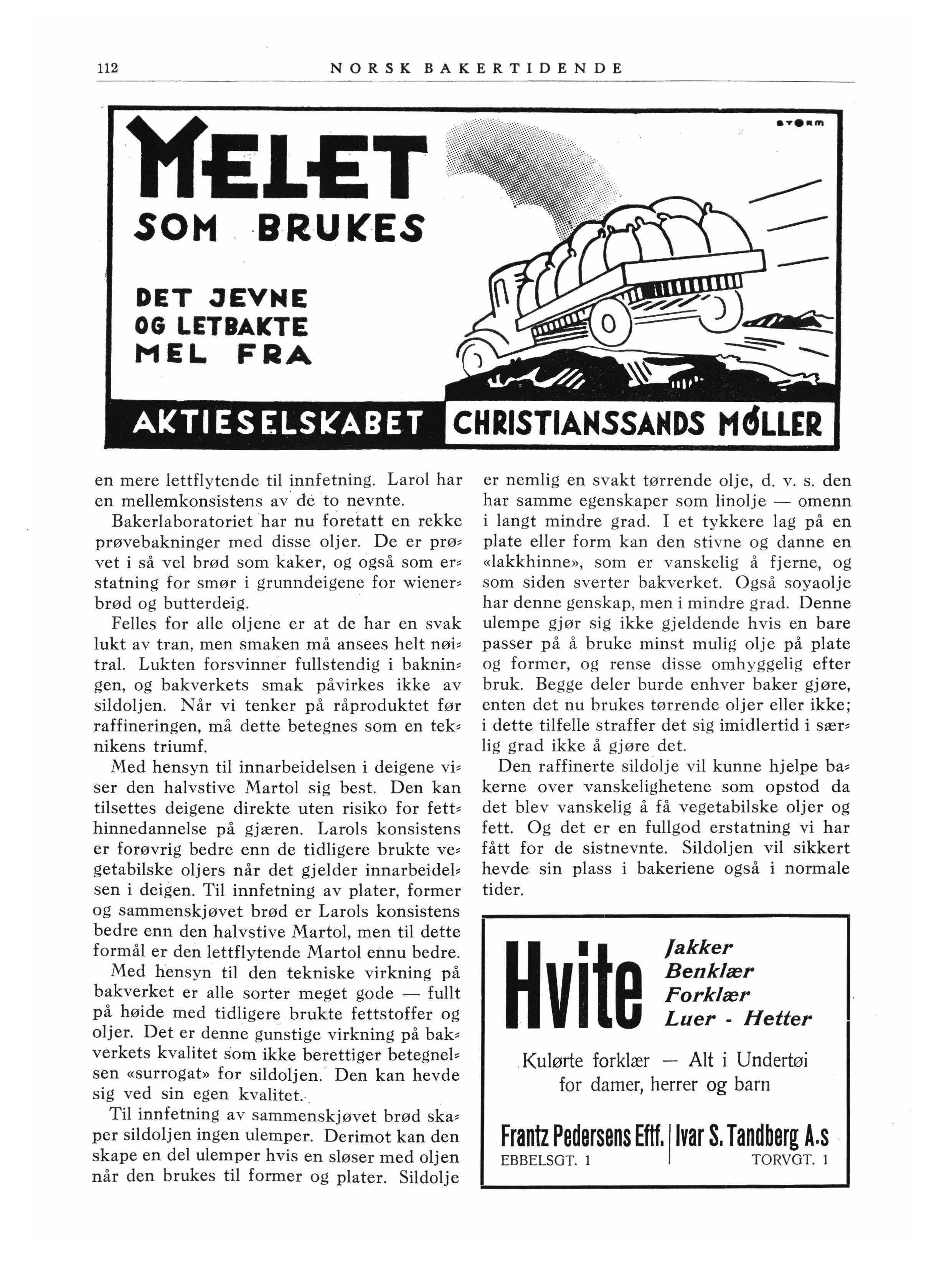 Det er to fabrikker som fremstiller sildoljer til bakerbruk - Johan C. Martens & Co i Bergen, og Den Norske Soyamelfabrikk i Lar• vik. Produktene går under betegnelsen av henholdsvis Martol og Larol. Av den første finnes to kvaliteter, en halvstiv til deiger og