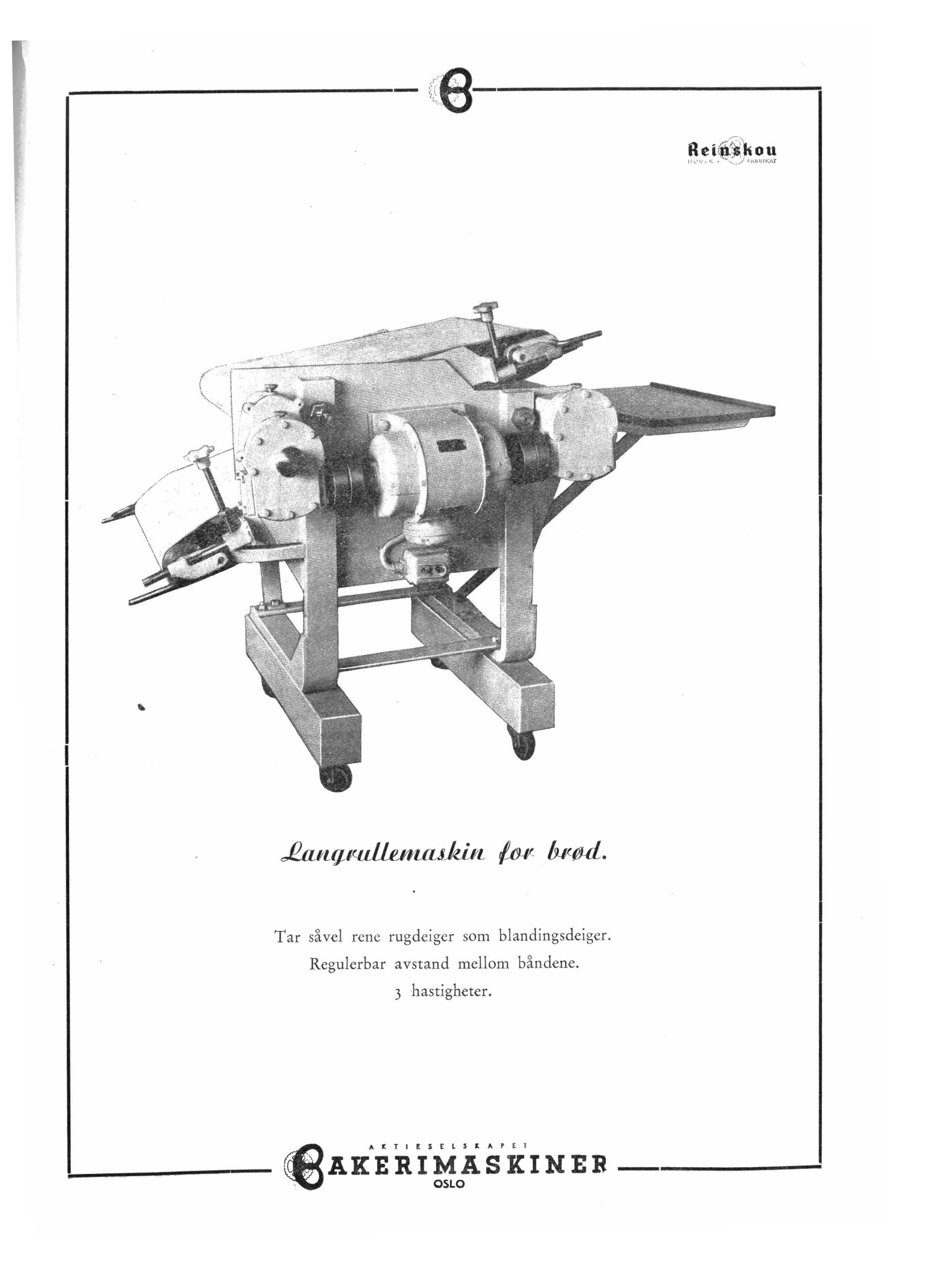 Alle slags bakeri og konditorimaskiner fra de ledende fabrikker. - Kalor Oljefyringsanlegg. Baker og Konditorovner.