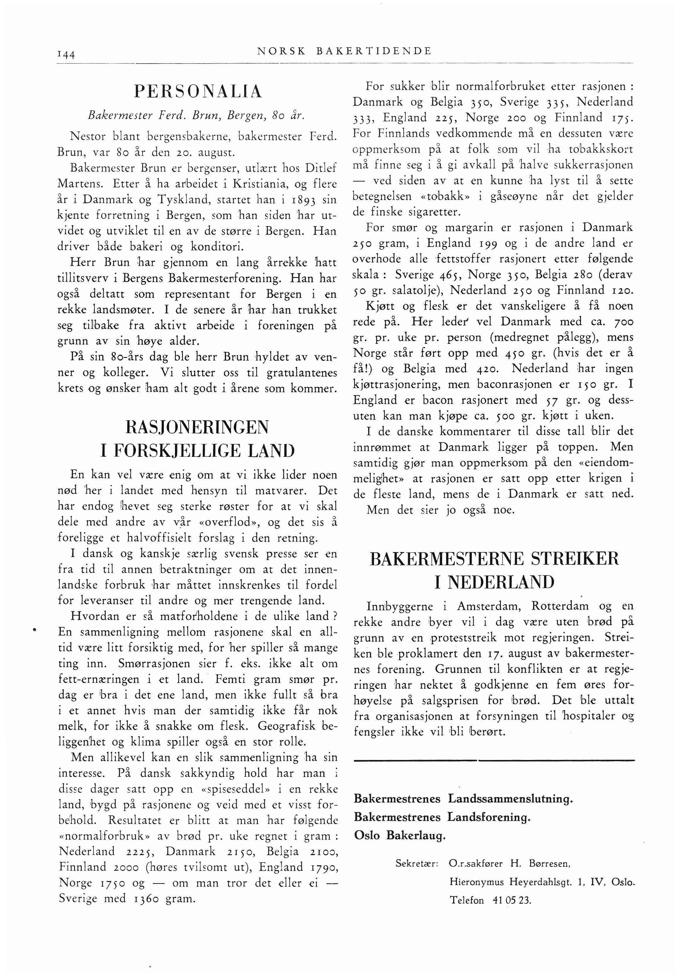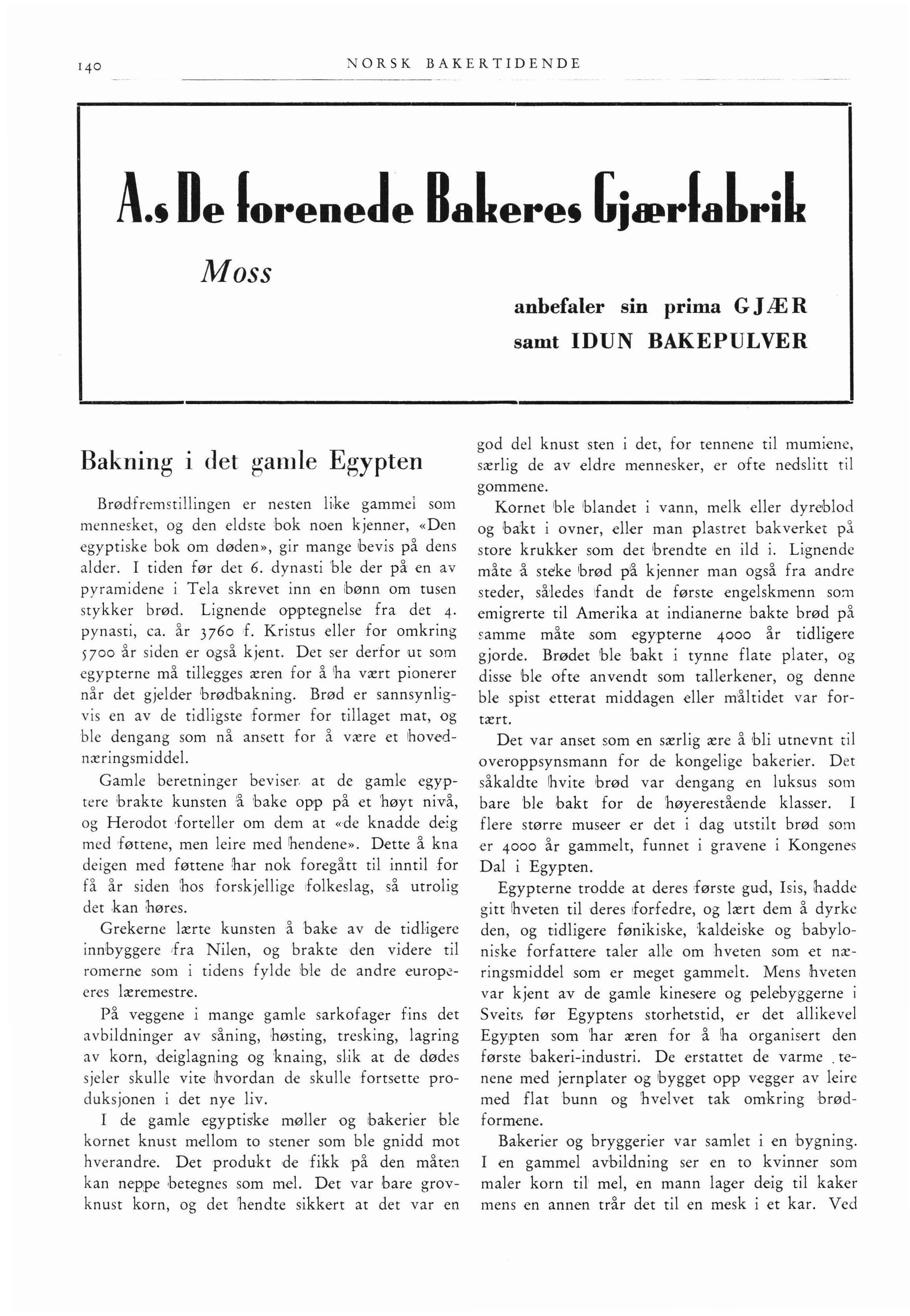 Brødpri sene og stigningen i hvetemelprisen. - Prosentkjørerne. - Lærling eundervisningen. - Trådtrekkende bakterier. - Elektriske bakerovner. •Bakerkursene. - Butikk-kultur i bakerbutikker.Nytt smøremiddel for former. - Bakning i det gamle Egypten. -