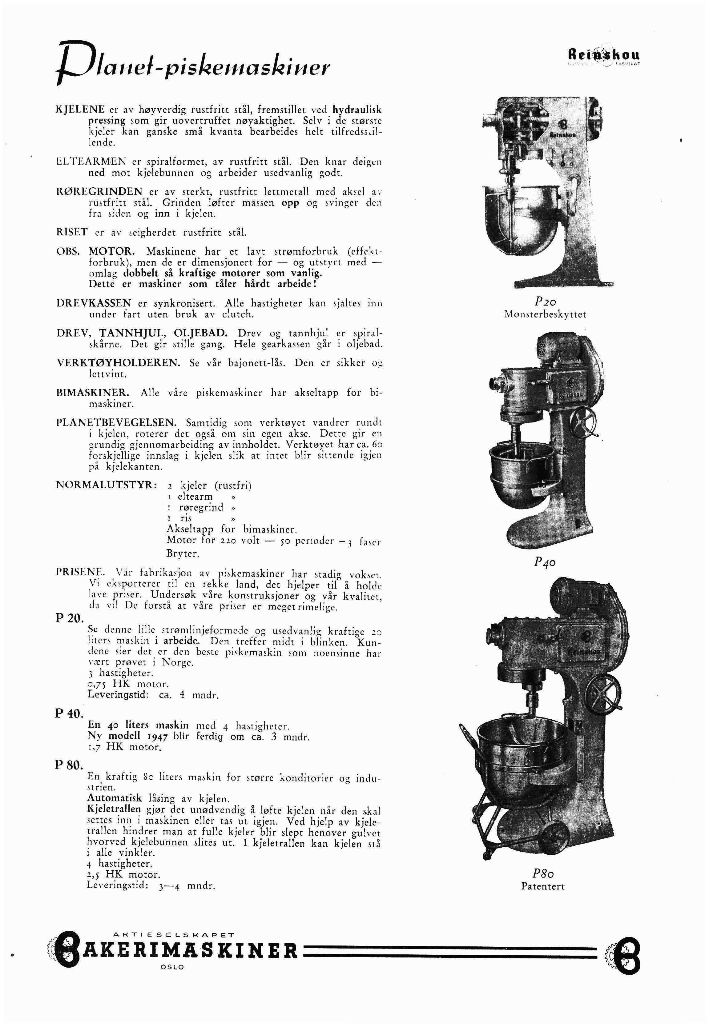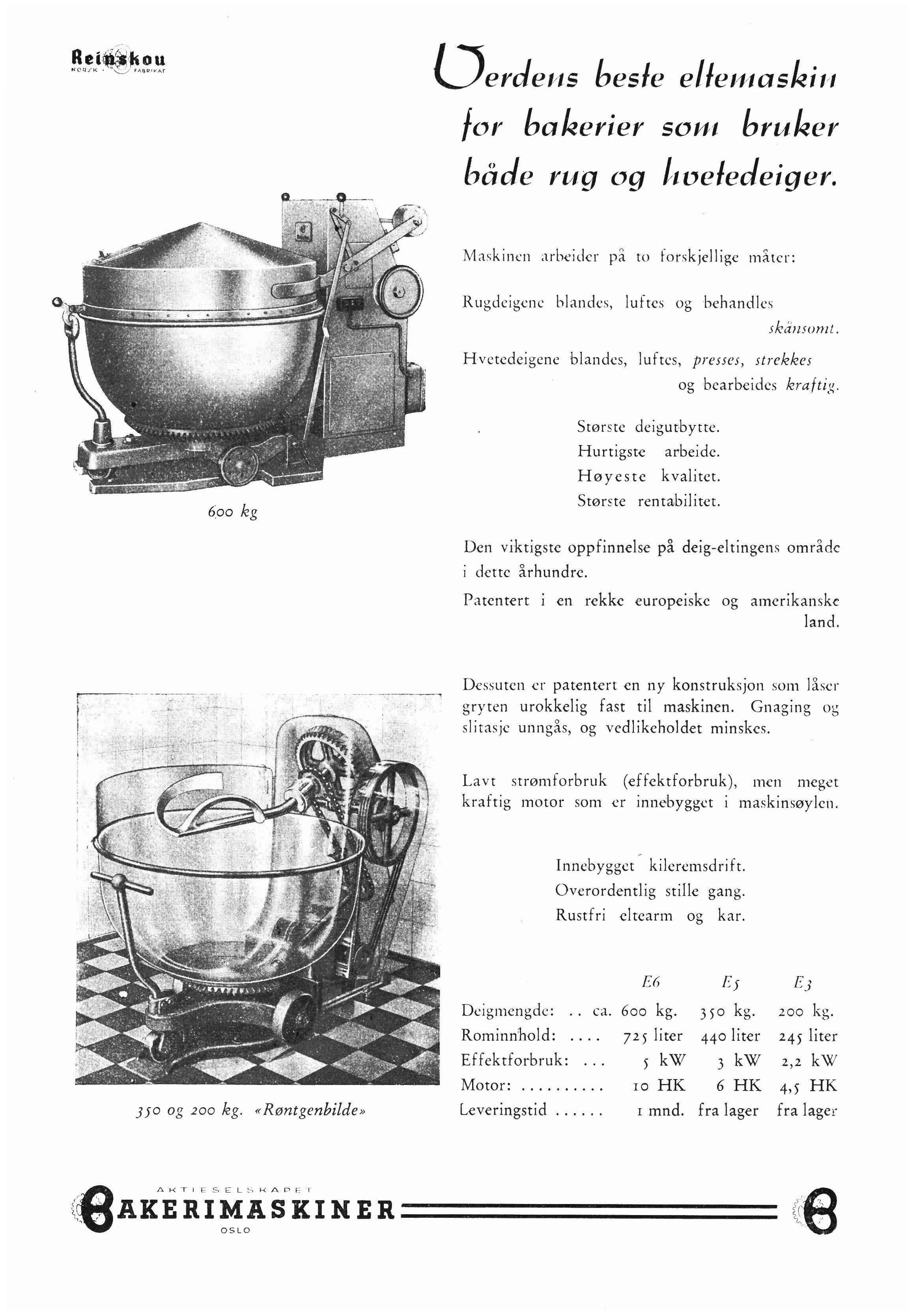 Alle slags bakeri og konditorimaskiner fra de ledende fabrikker. - Kalor Oljefyringsanlegg. Baker og Konditorovner. i