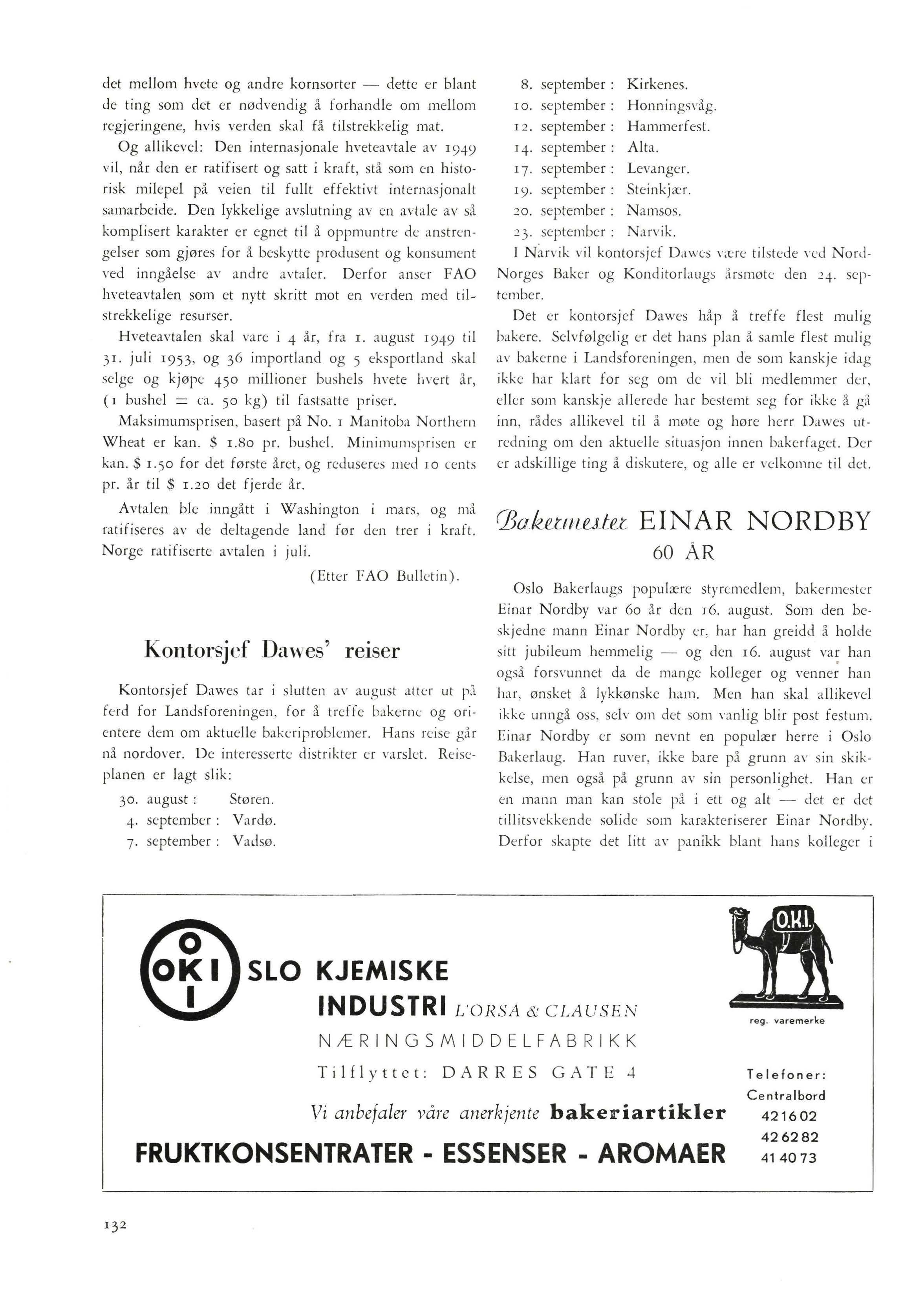 BOKHOLDERI- OG KALK U LA SJO N SK U RSET - RÅSTOFFE NE - 41 N ASJONER SLU TTER HVETEAVTALE - KONTORSJEF DAWES ' REISEREINAR NORDBY 60 ÅR - MARGARINSENTRALENS STIPENDIER - M M.