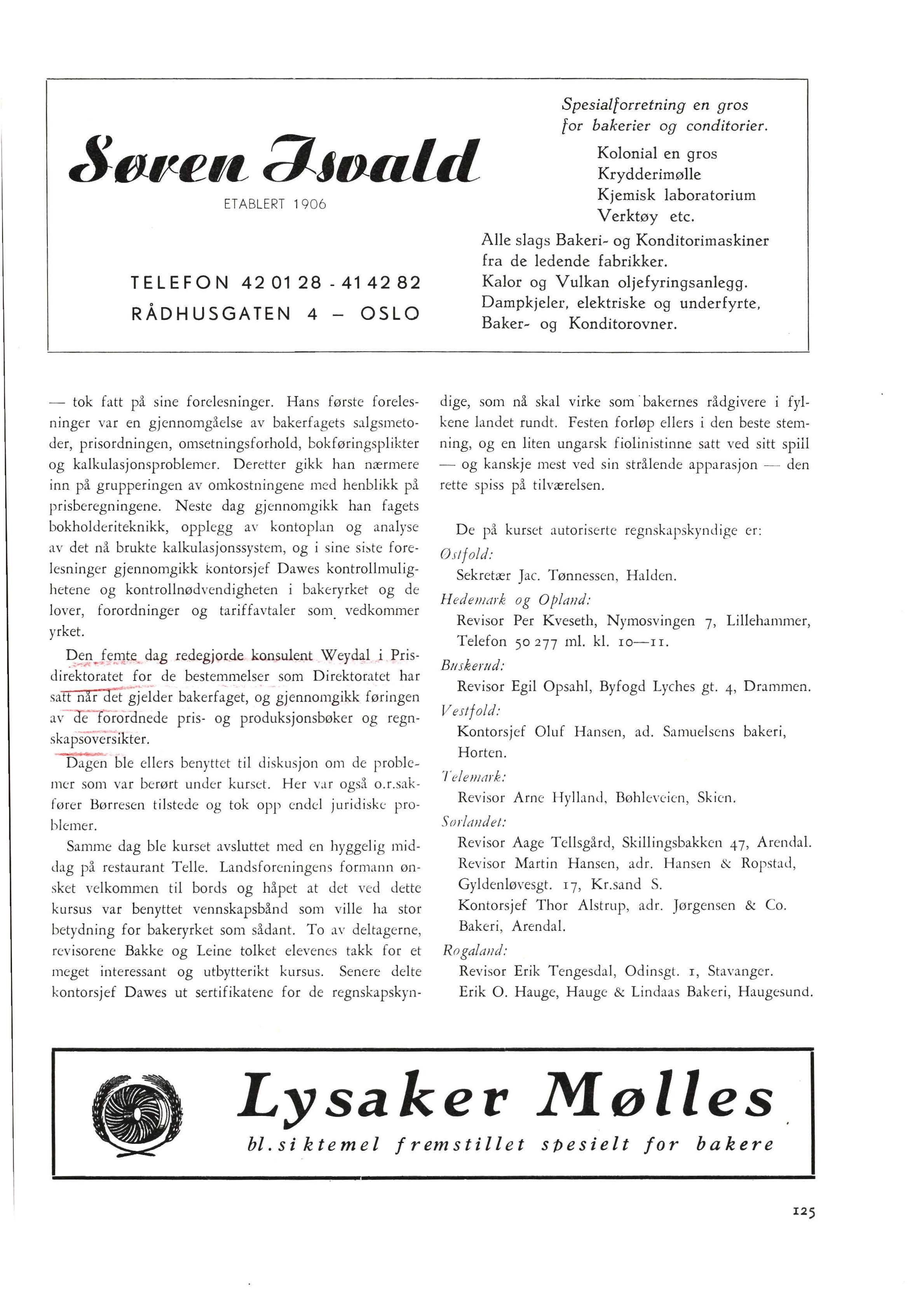 Revisor Erik Tengesdal , Odinsgt. 1, Stavanger. Erik 0. Hauge, Hauge & Lindaas Bakeri, Haugesund.