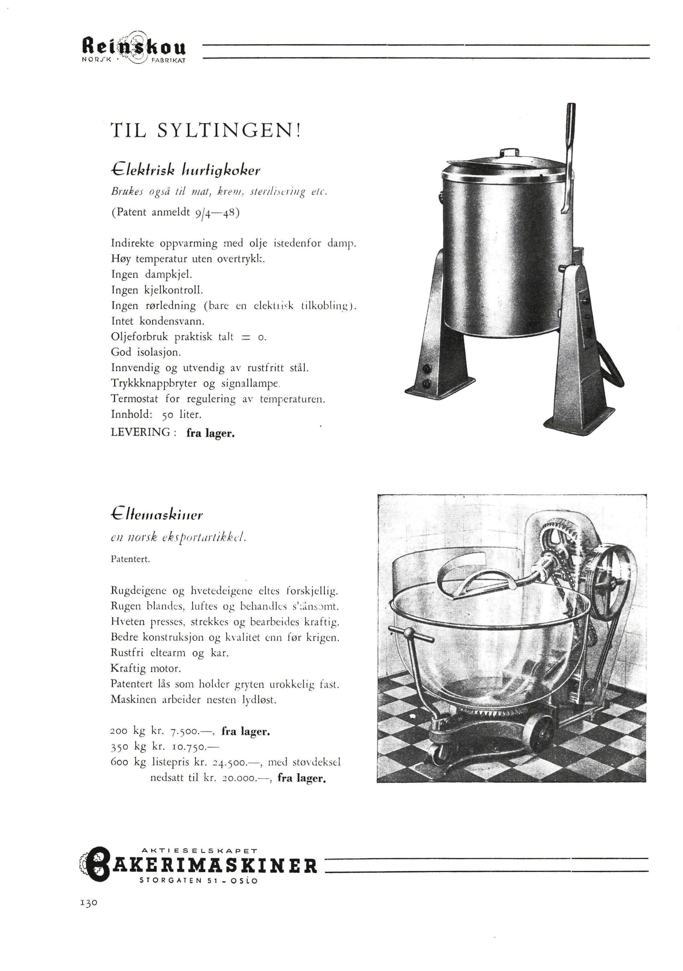 Salgskontor: F. K. FINBORUD AJS, Chr. Kroghsgt. 30, Oslo