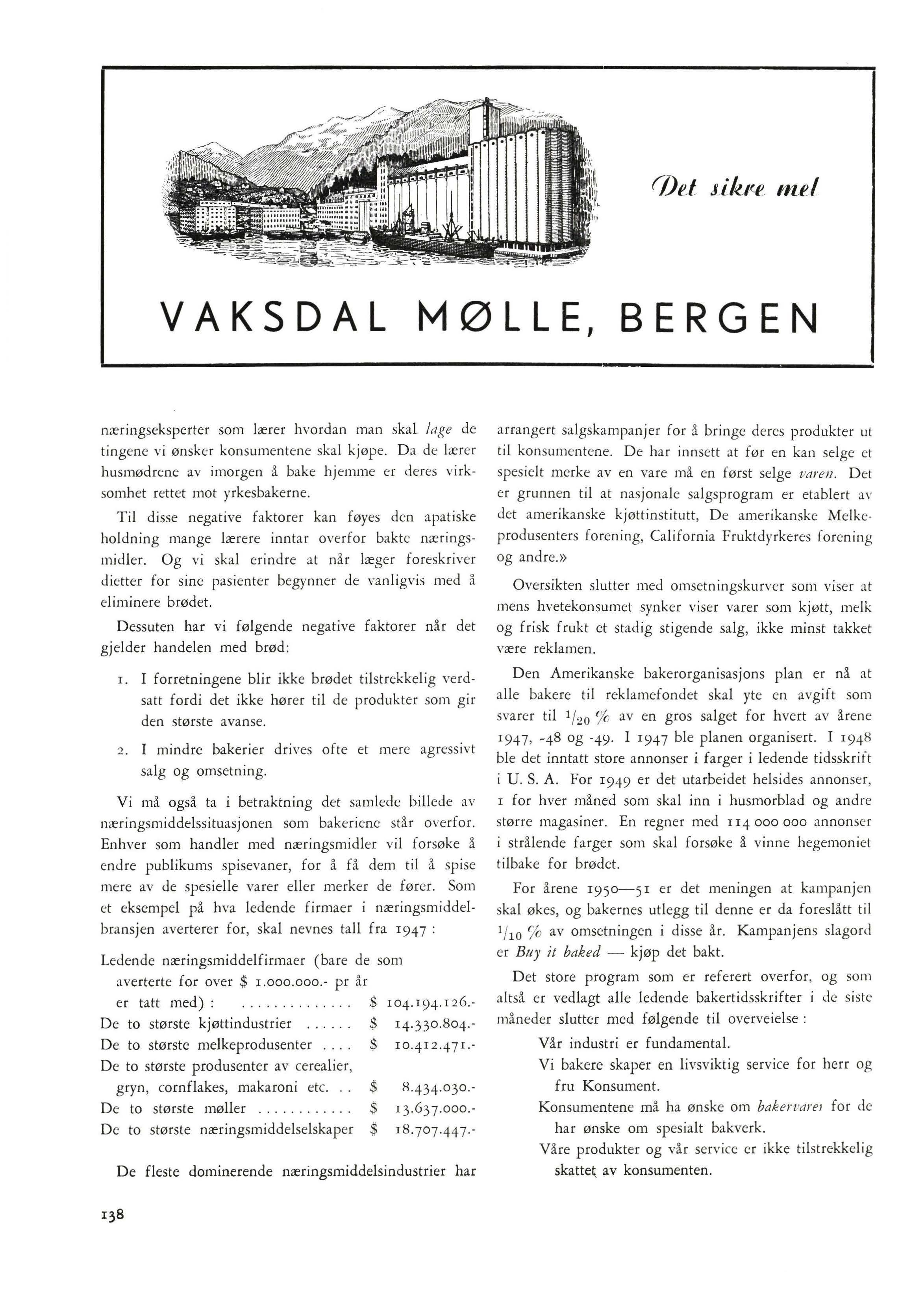 Før st gis en oversikt over bakeriene i U. S A D e tall som nevnes er fantastiske, rent ut sagt amerikansk e. I 1947 omsattes i U.S.A. bak e rva r e r for$ 3.782.000.000.